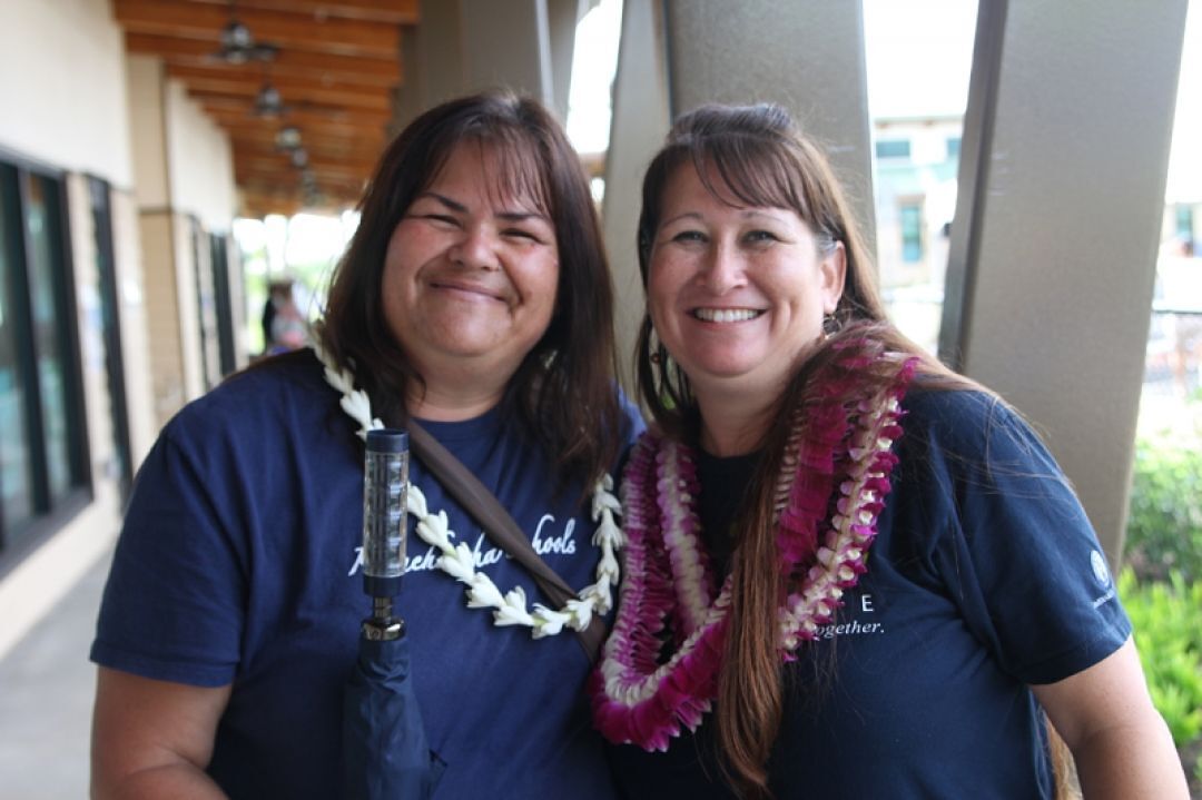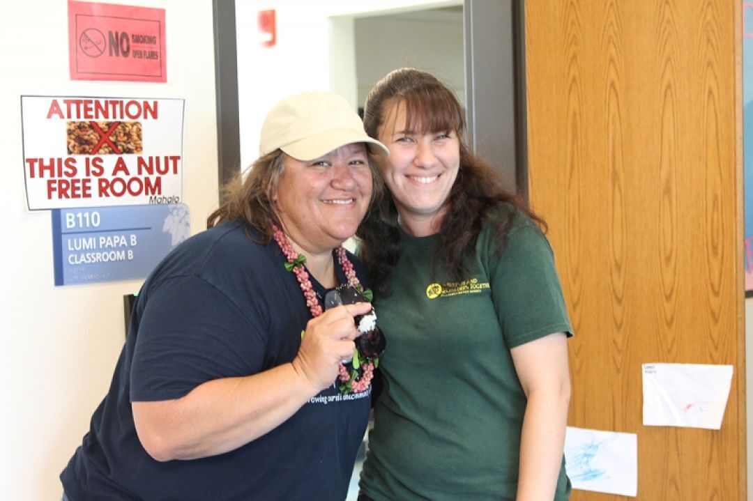 KS preschool teacher Mary Lynn Kalei and Ka Pua Director of Early Childhood Strategies Nicole Souza celebrate the successful opening.