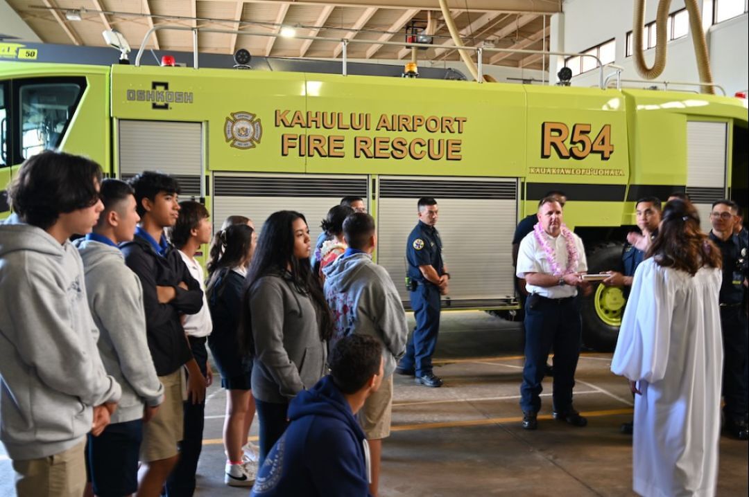 When Kumu Kehani Guerrero was approached to have her eighth-grade haumāna help name a new fire truck for the Airport Aircraft Rescue and Fire Fighting (ARFF) facility at Kahului Airport, it wasn’t a task she and her students took lightly.