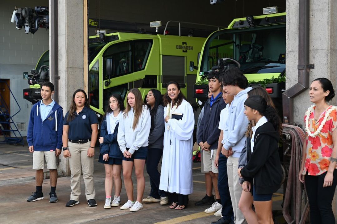 After a semester of work, the haumāna last week finally got to see the name they collectively chose for the new truck emblazoned on its side in gold letters. On hand for a blessing of the truck, haumāna had a chance to meet the firefighters — many of whom are KS Maui graduates — who would be using the vehicle to save lives.
