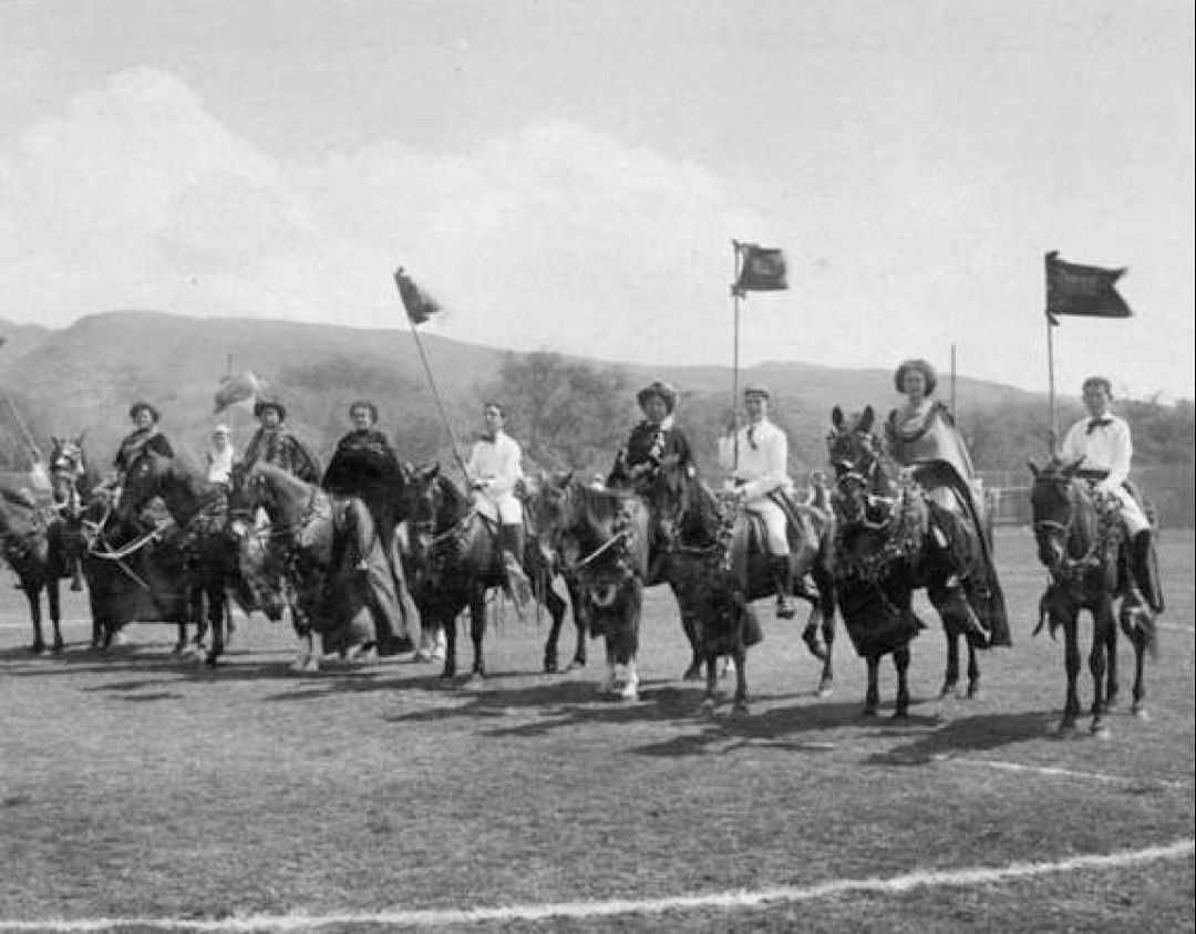 In that parade, about 30 riders gathered at the residence of Kainana Puahi in Waikīkī. Their costumes consisted of yellow skirts, white waists, and straw hats encircled with ‘ilima lei.