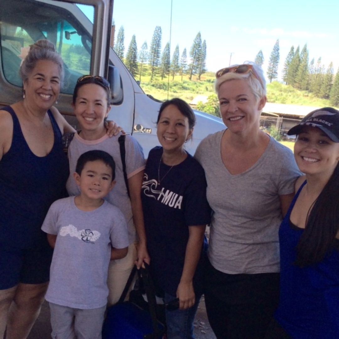 Left to right: Kumu Ekela Kaniaupio-Crozier, Kumu Noelani Yatsushiro and her son Blake, Kumu Angie Abe, Kumu Lori Guntzel, and Kumu Kēhau Lucas.