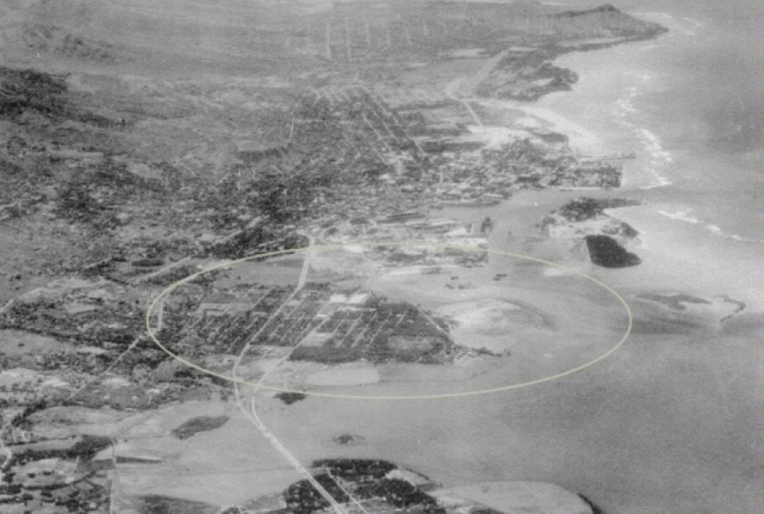 In addition to terraced loʻi kalo, 22 loko iʻa (fishponds) were recorded in Niuhelewai and Kapālama in the mid-nineteenth century. Kamehameha was responsible for many of these loko iʻa. Photo courtesy of the Hawaiʻi State Archives.