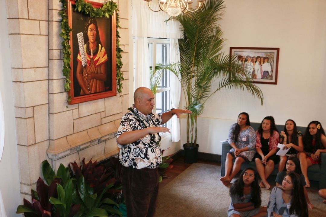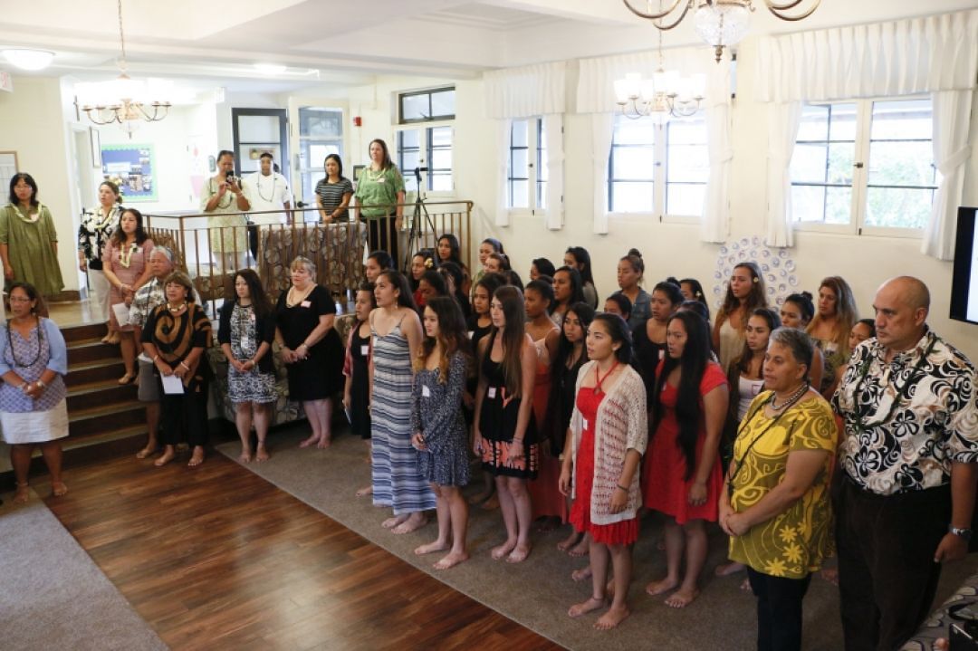 The girls of Kapi‘olani Nui oli to open the ceremony to unveil the new portrait.