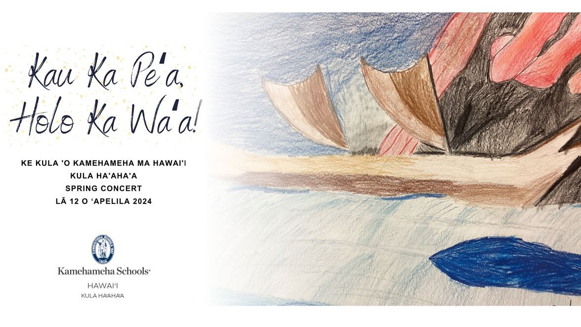 Nā haumāna a me nā kumu of Kamehameha Schools Hawaiʻi Kula Haʻahaʻa presented their Spring Concert on Friday April 12 at 6 p.m. from Hāʻaeamahi Dining Hall. The beloved tradition brings so many smiles to faces as keiki sing mele and dance hula in such a special way. This year's theme takes us to Moananuiākea as we celebrate the rich voyaging history of our kūpuna with "Kau ka Peʻa Holo Ka Waʻa!"