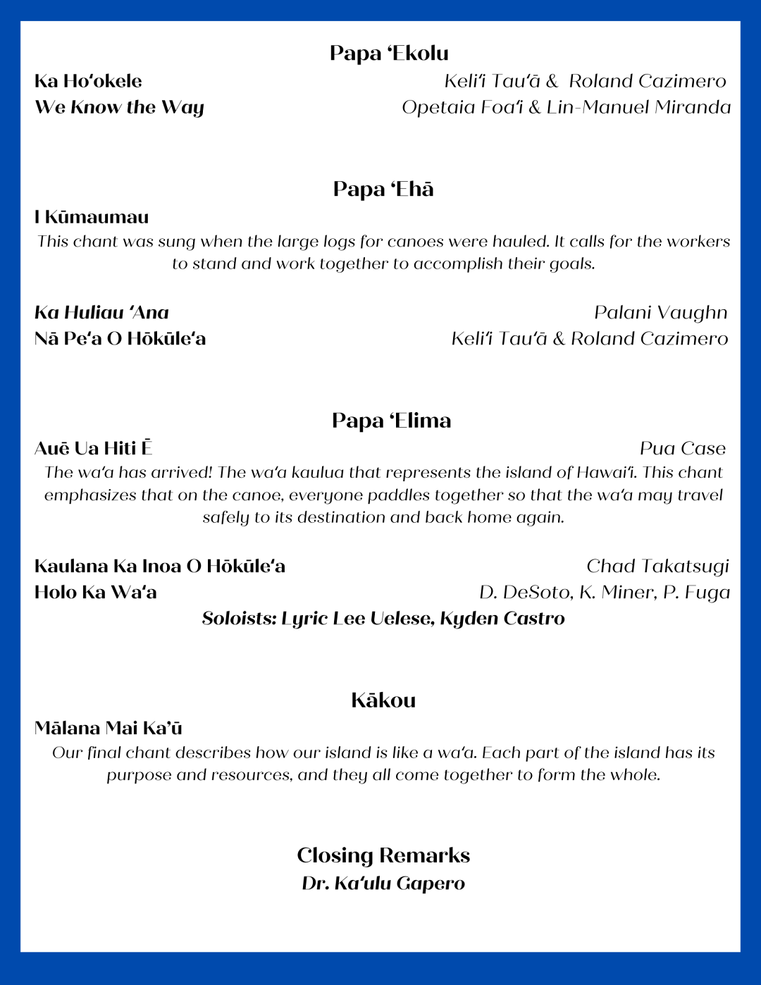 Grades 3-5 performances and closing mele and manaʻo.