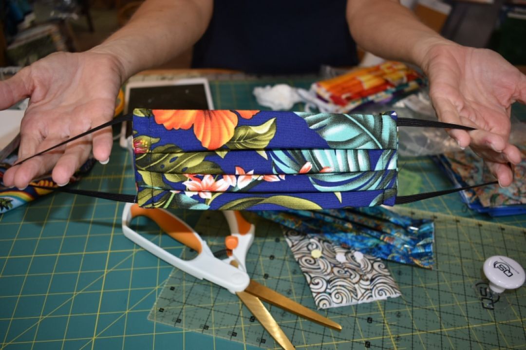 Keauhou Shopping Center tenant Honya Sawinski of Fabric and Quilting Delights donated material and time to sew over 600 masks for frontline workers and kūpuna at Kona Hospital and the senior living facility Hualālai Regency.