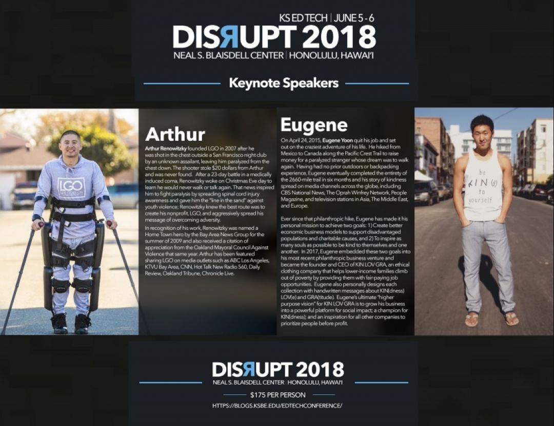 Inspirational speaker and environmental activist Liz Clark will join Arthur Renowitzky and Eugene Yoon as the keynote speakers at the 2018 Kamehameha Schools Education Technology Conference, DISRUPT.