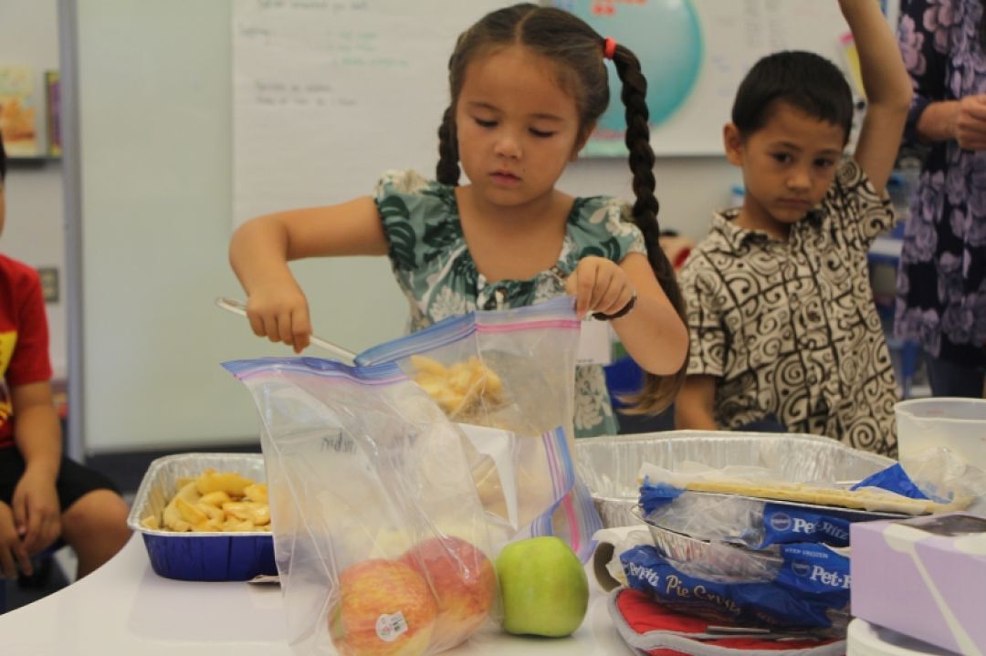 To celebrate fall, the Kindergarteners learned about apples and had a great time participating in a variety of apple activities. They got to taste a variety of apples and vote on their favorite type of apple. They also compared apple cider and apple juice. Their big project for the day was to help bake an apple pie which they all got to eat after it was done baking! We LOVE apples! Happy FALL!
