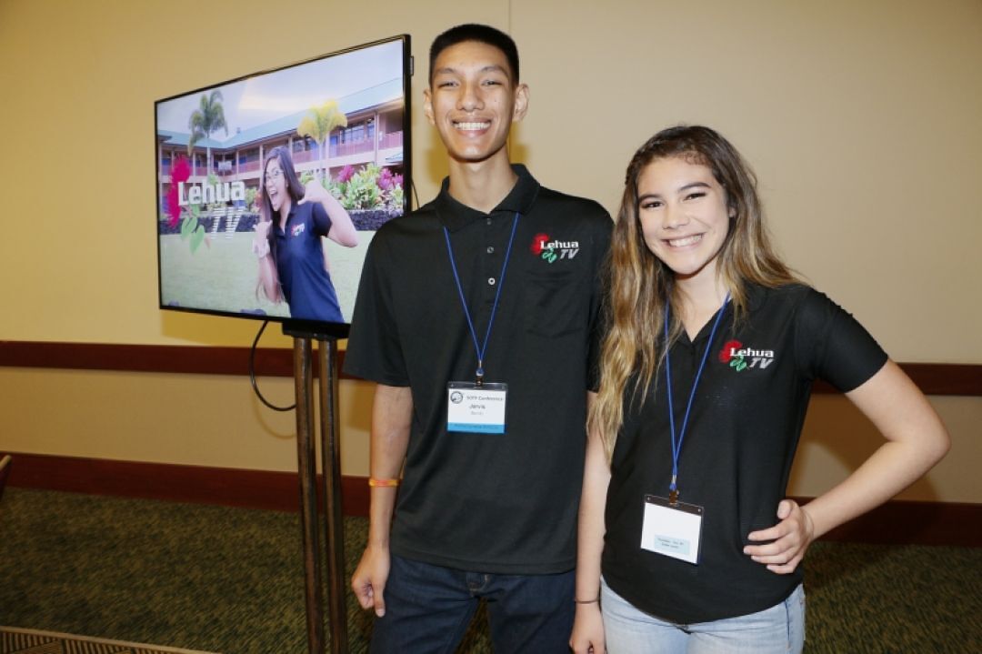 KSH students Jarvis Benito and Carlie Baclig show the work they've done with Lehua TV.