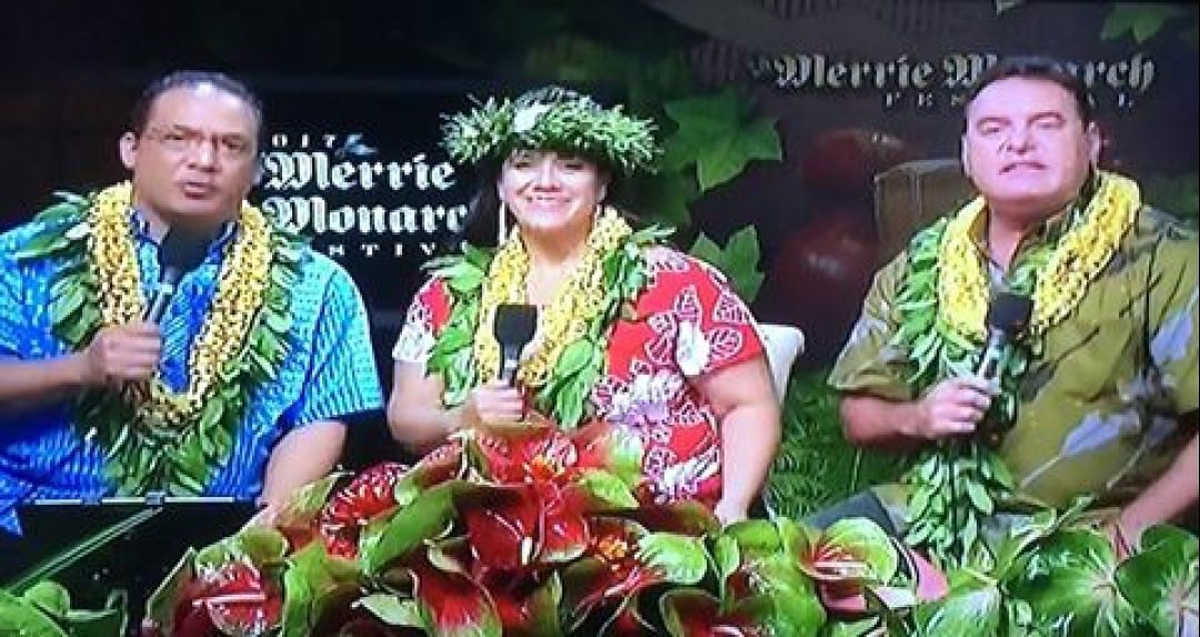 TV personality Billy V, Hawaiian language expert Amy Kalili KSK’89, and KS Cultural Consultant and kumu hula Manu Boyd KSK’80 provided cultural commentary during the hula competition.