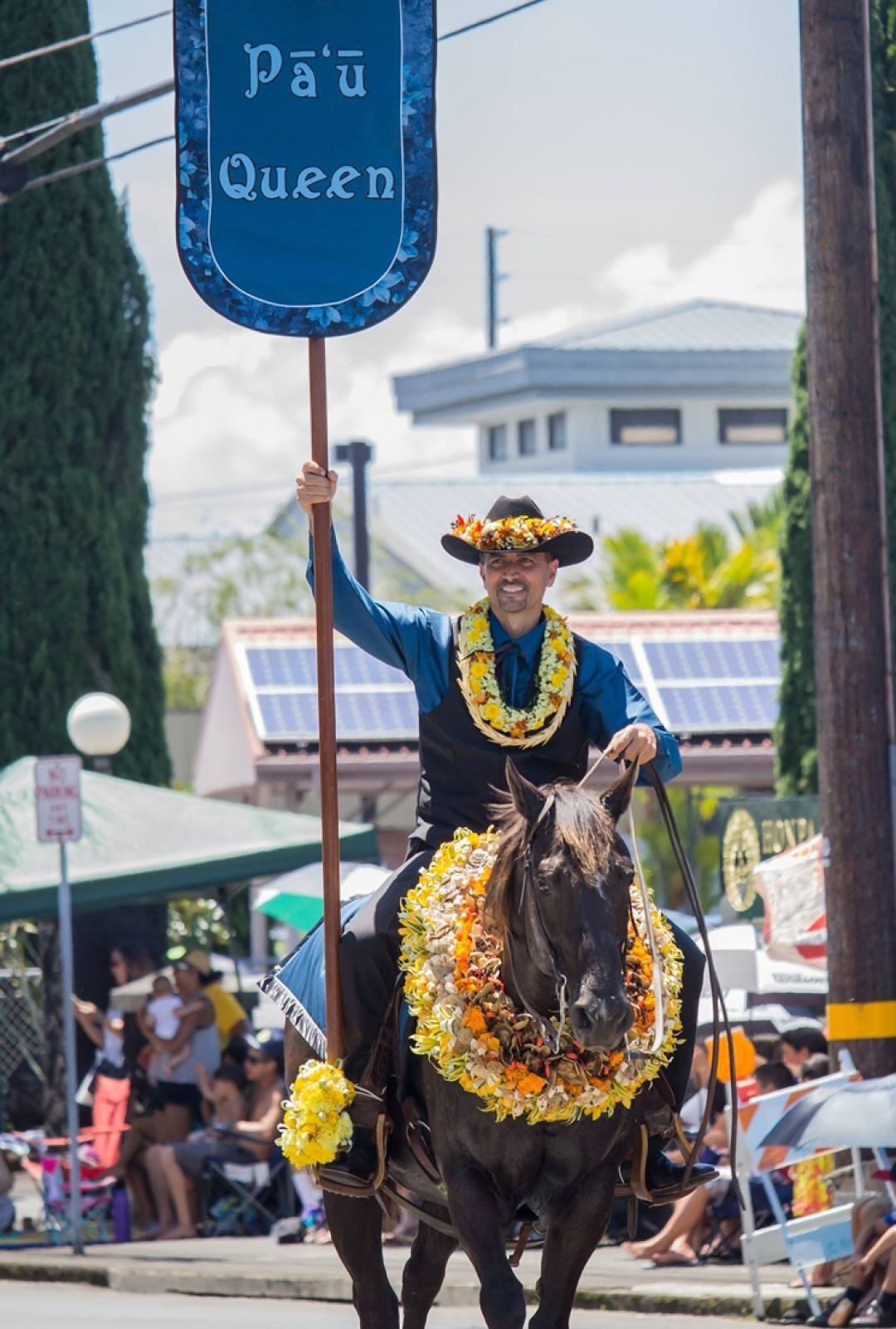 KS Hawai‘i Associate Head of School Scott De Sa and his ‘ohana rode in the prestigious Pā‘ū Queen’s unit in the festival’s Royal Parade. Photo by Nicolas Kale Los Baños.