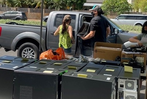 Students at Ke Kula Kaiapuni ʻo Ānuenue received the first computers during two drive-through events in June at the Palolo campus and KS’ Community Learning Center at Māʻili. A total of 237 devices were given out.