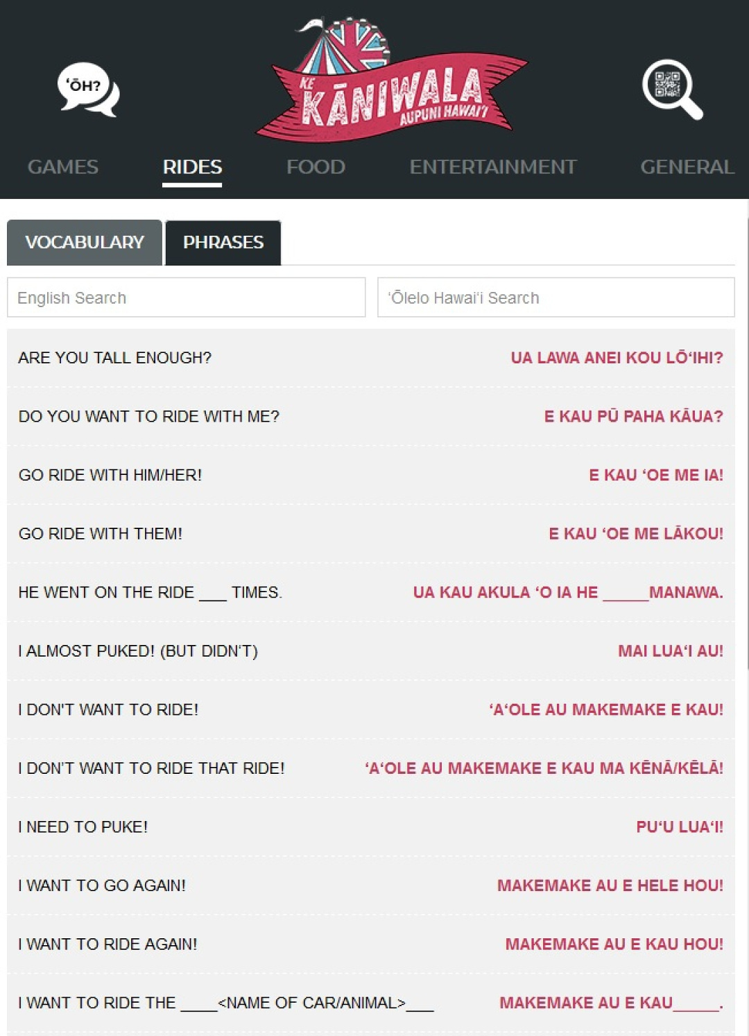 Say it ma ka ʻōlelo Hawaiʻi! To learn some cool Hawaiian words and phrases that can be used in a carnival setting, go to the kāniwala website: http://kaniwa.la/.