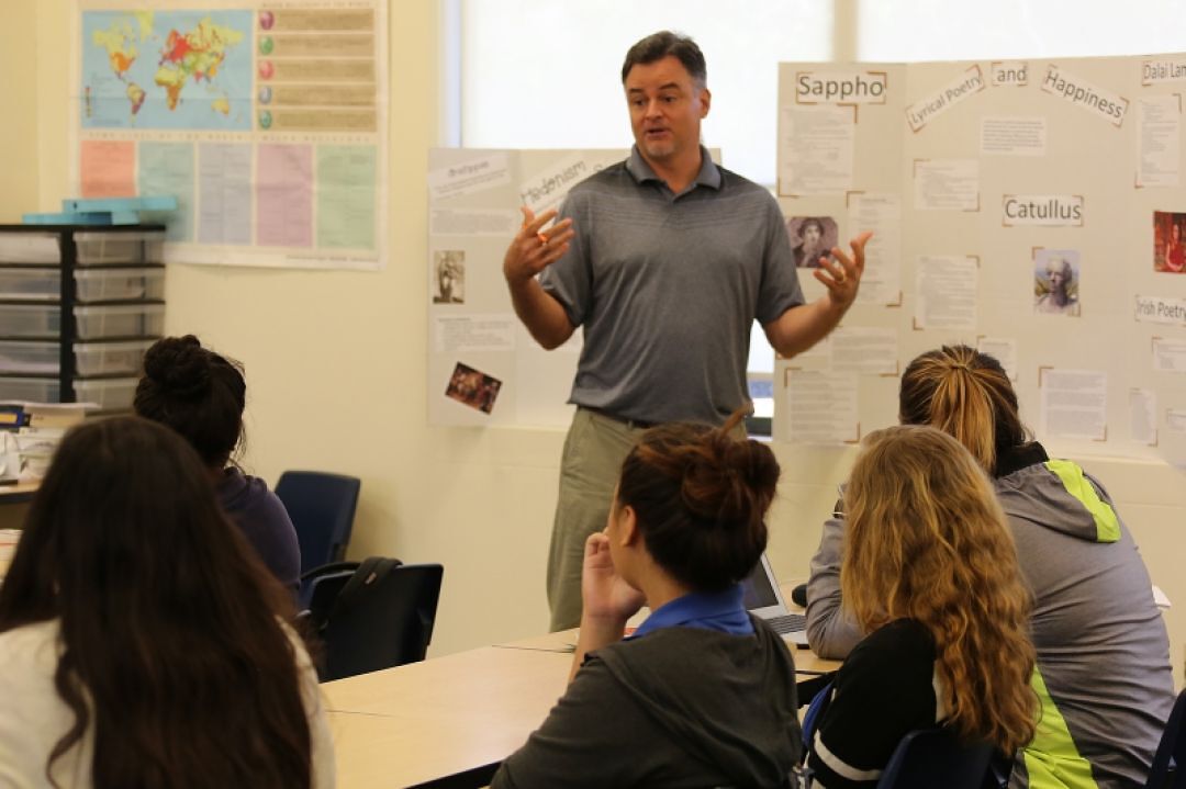 World History teacher Dave Bellosi offers students an Intro to Humanities course through the Saint Louis University partnership, giving students a supportive environment to challenge themselves.