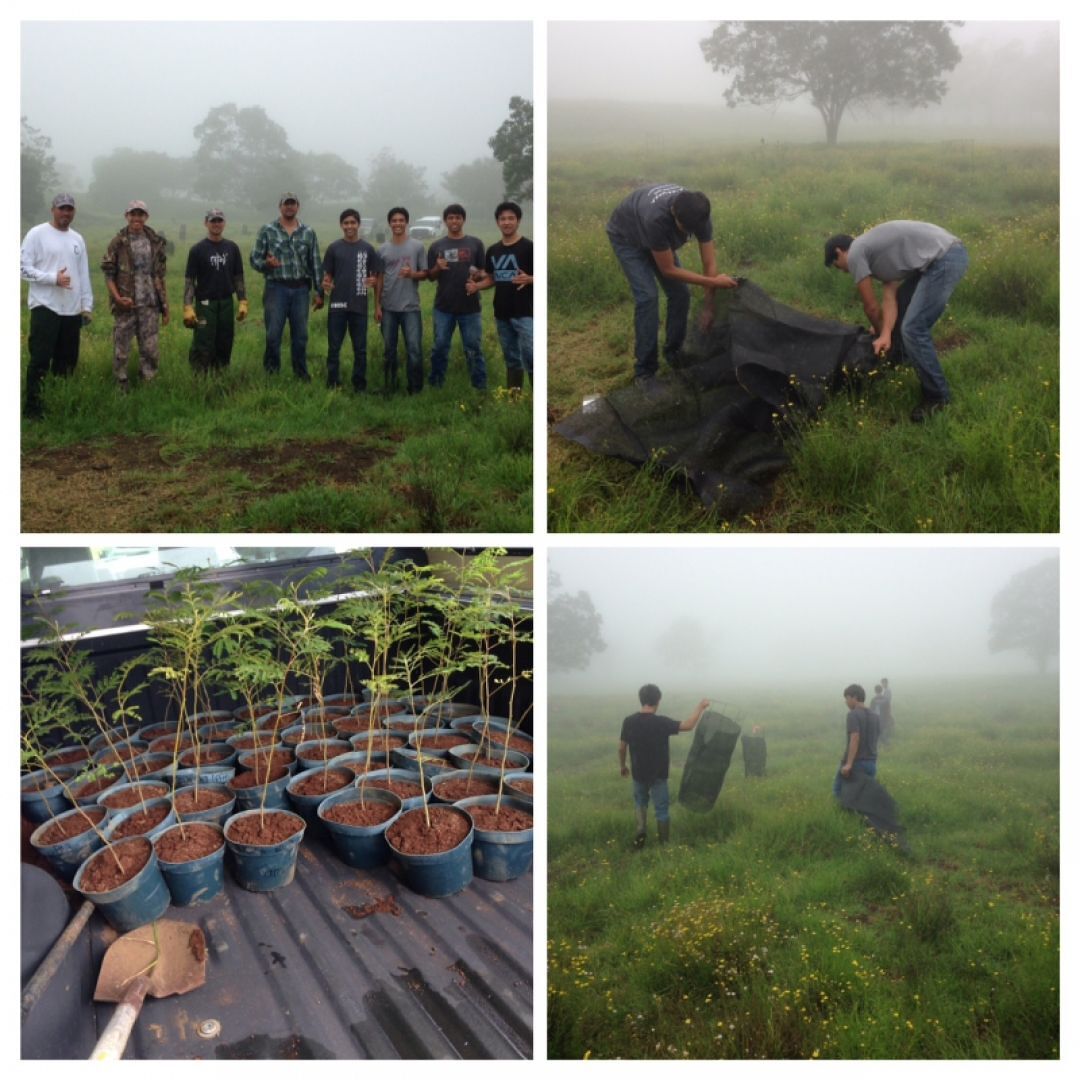 The club then took steps to protect the new seedlings by clearing fireweed and grass, digging holes, preparing wire rings laced with mesh, placing seedlings into the newly dug holes and gathering mulch around the bottom. Haumāna collected data on each seedling and used a GPS device to pinpoint each one for tracking purposes.