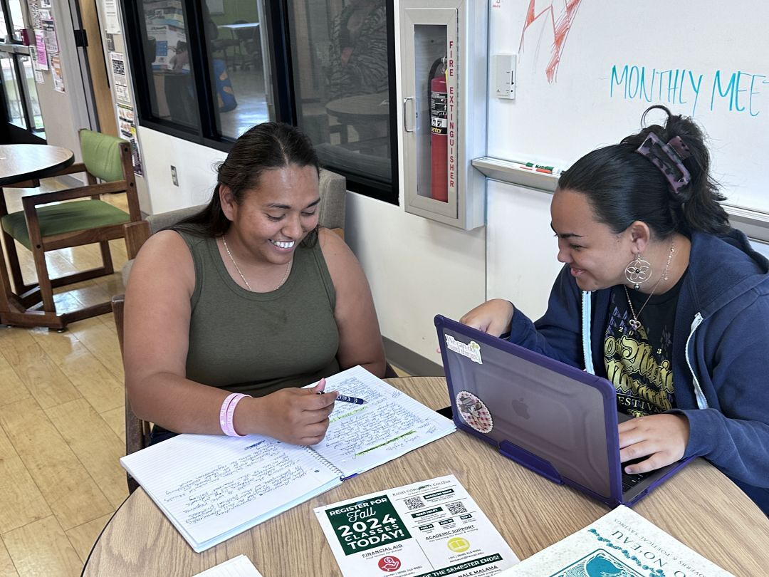 Hi’ilani Cremer (left) is now a mentor for The Waiʻaleʻale Project, a program at Kauaʻi Community College for nontraditional students.