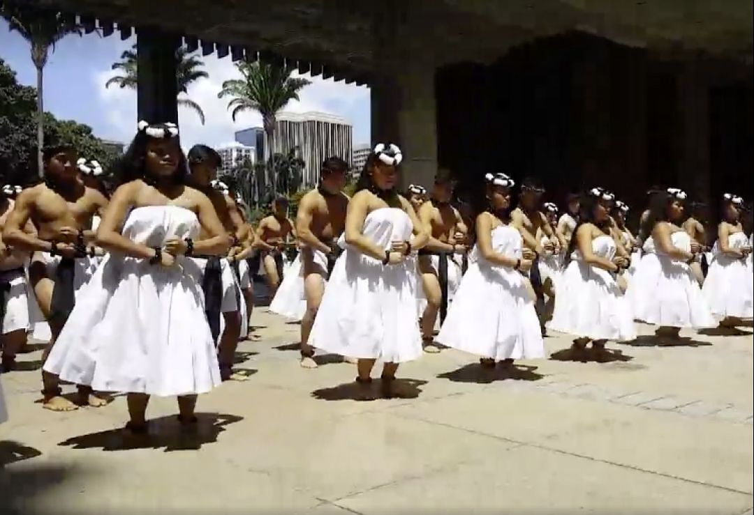 The KS Kapālama Hawaiian Ensemble performed a hula in tribute to the late Senator Daniel Akaka.