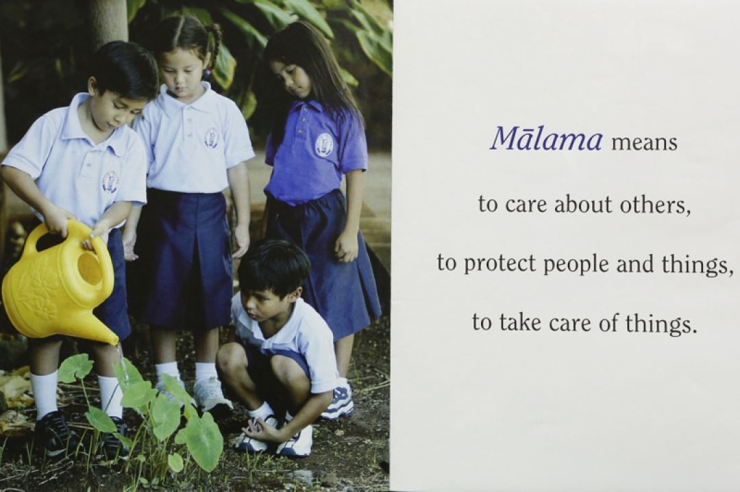 “We hoped that the book would help our haumāna learn and live our KS values by showing them examples of how the values can be used in everyday life,” said KS Human Resources Shared Services Coordinator Ed Kunipo. He co-created the book with KS Photographer Michael Young and retired Production Editor Waimea Williams. Kunipo also wrote the “Kamehameha Schools Values Mele” included in the book.