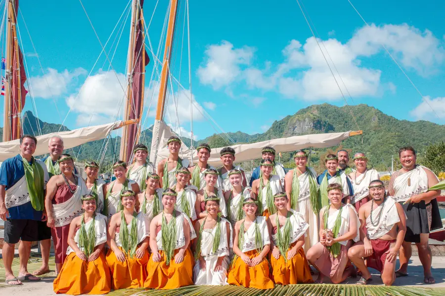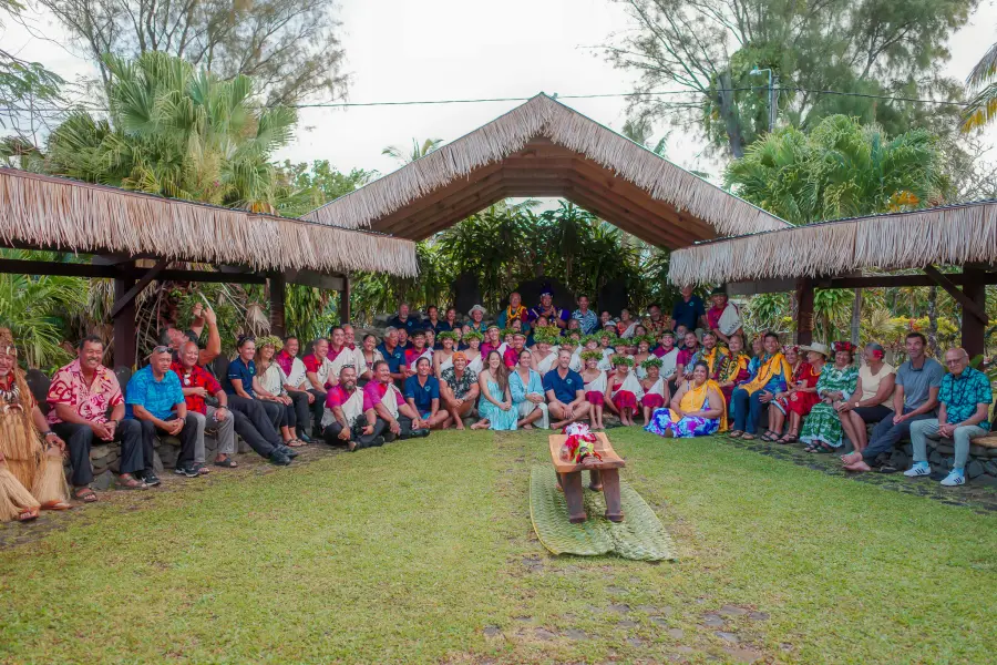In August 2025, the talented haumāna and kumu of the Kamehameha Schools Maui Hawaiian Ensemble, under the direction of Kumu Kalei Aarona-Lorenzo, Clarke Tuitele, Kuʻulei Alcomindras-Palakiko, and supported by Kui Gapero, Uluwehi Maxwell and Mark Palakiko, spent 8 days on the island of Rarotonga in the Cook Islands. What drew them to this special place was an emerging educational partnership with an extraordinary local non-governmental organization. Kōrero O Te ʻŌrau is dedicated to teaching and inspiring Rarotongan youth to restore their island’s ecosystems and steward the environment through their cultural heritage. Leading the Maui delegation was former high school poʻo kumu and current poʻo of Hālau ‘o Kapikohānaiāmālama, Jay-R Kaʻawa, whose progressive vision for KS Maui reflects the Indigenous values and lifeways shared by our extended family across Moananuiākea.