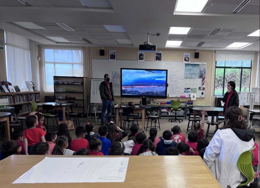Kumu Naupaka Joaquin and Kumu Hōkūao Pellegrino share photos of the Mauna Loa eruption with KSM haumāna.