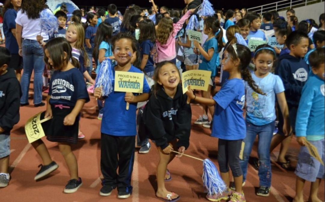 Elementary school students show their excitement for the parade in different ways at the start line. Students from the elementary and middle school campuses led off the parade, much to the delight of parents in the stands. Cuteness factor, 1000!