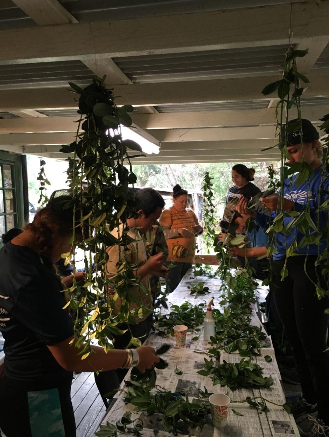 The KS Resource Center staff taught the KS Maui seniors how to pick and make a maile lei. Ironically, this yearʻs KS Maui senior class is Papa Maile.