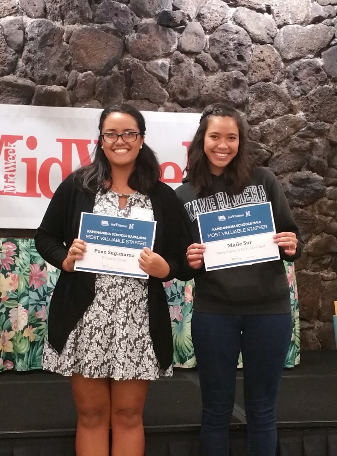 Pono Suganuma and Sur stand together after being named Most Valuable Staffers at their respective newspapers.