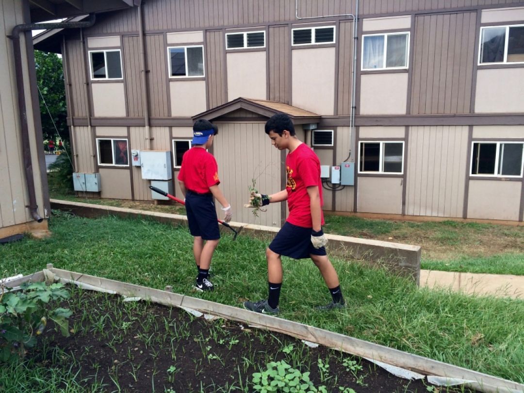 This past Friday, the entire middle school participated in service to kōkua a community agency with the idea that many helping hands get the job done much quicker than one person. Students, kumu, and staff helped at: Malaʻai Poi (Wailuku), Ka Hale A Ke Ola Shelter (Lahaina, Wailuku), Leilani Farm Sanctuary (Haiku) and Hale Hoʻikeʻike (Wailuku).