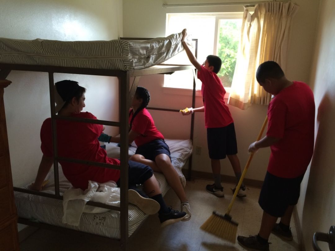 Several of the community groups were new to our service list, among them Leilani Farm Sanctuary. The group who helped the sanctuary learned a lot about this farm in Haiku – its purpose and cause, to give animals a safe place to live. Guests who visit are educated on factory farming – animal production for human consumption. Students also helped at the Lahaina homeless shelter by prepping units for new occupants and cleaning the grounds.