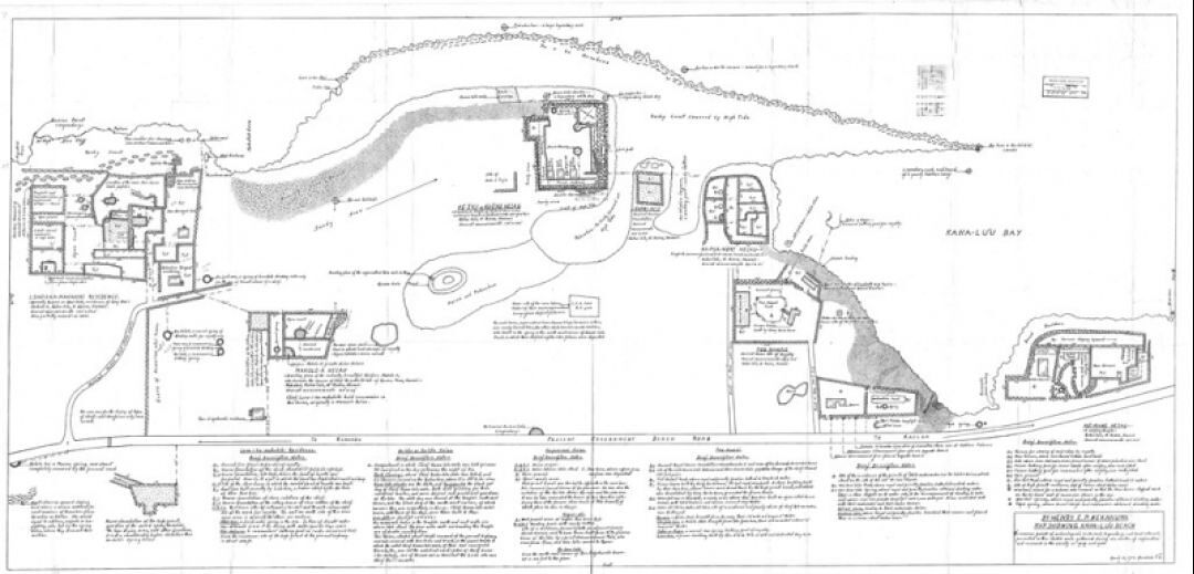 The original map of cultural features at Kahalu‘u Ma Kai, created by Henry Kekahuna in 1952