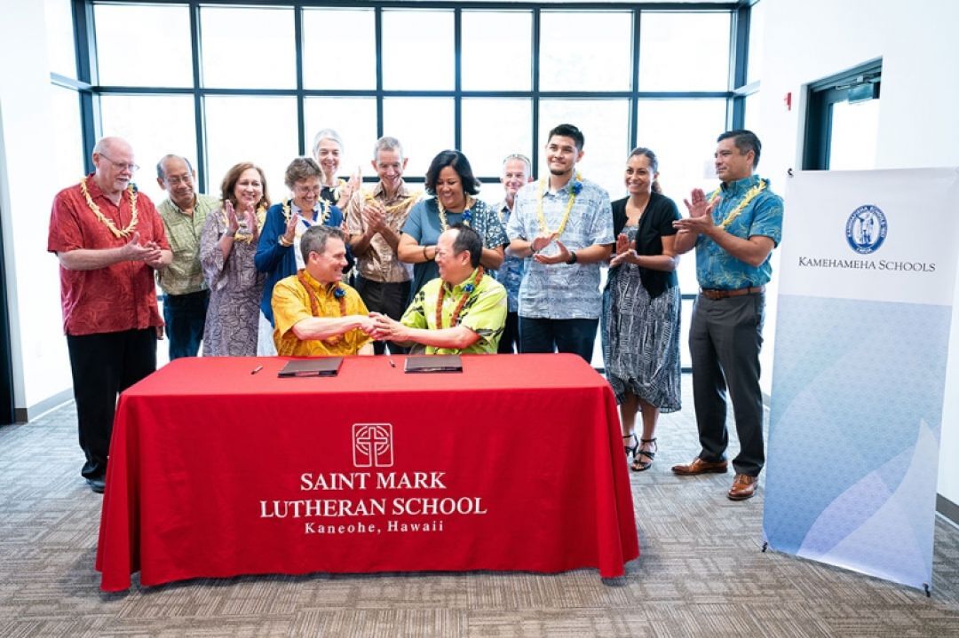 Kamehameha Schools and Saint Mark Lutheran School are aligning resources to help Windward O‘ahu families acquire high-quality early childhood education for their keiki. The two-year partnership, which was announced on Aug. 26, 2019, will include up to $320,000 in tuition assistance from KS, research and data sharing between schools, and wrap-around support for families.