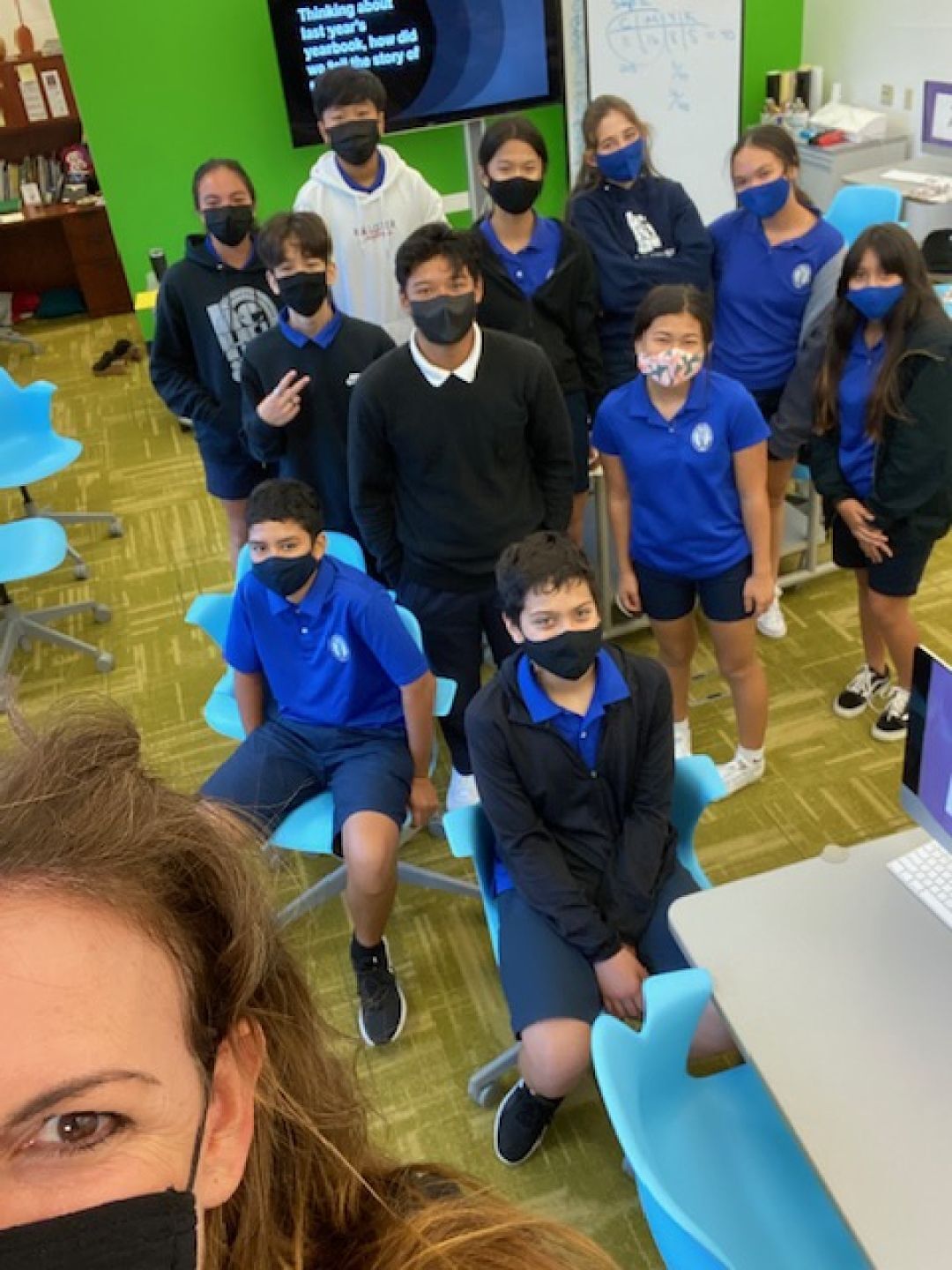 KSH MS INNOVATION TECHNOLOGY KUMU ELLEN CORDEIRO – I enjoy seeing students in person and hearing about how stoked they are to be back in school! They don’t want to stay at home, they want to be here. It’s nice to see the joy on their faces when they’re with their friends. And of course, having class in person is way more fun! WHAT WE’RE UP TO – We’re currently working on principles of design in my Media Communications and Yearbook class.