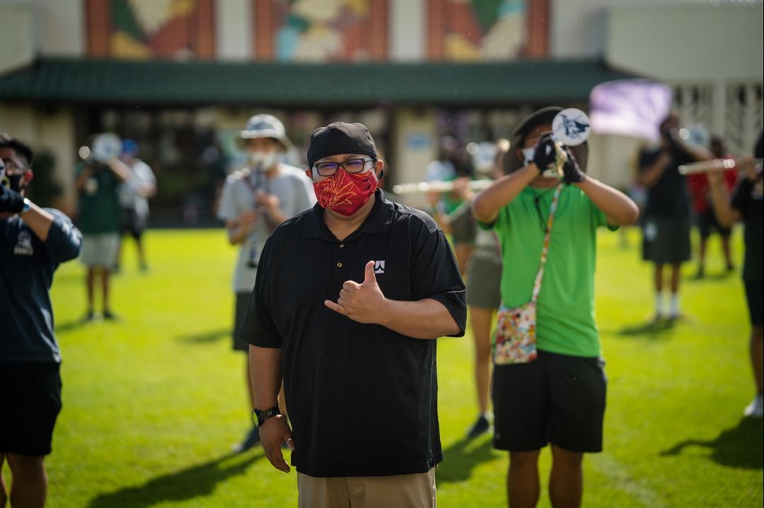 KSK HS BAND DIRECTOR MATTHEW URABE – It has been a joy working with our haumāna in person and seeing how excited and happy they are to see each other and to get back to some sense of normalcy. WHAT WE’RE UP TO – The biggest lesson that I am teaching our haumāna is one of sacrifice and discipline. I have stressed to them the importance of following the school’s safety protocols and procedures not only to protect themselves, but to protect each other, their `ohana and our band program. In order to do this we all need to make sacrifices and be disciplined in how we handle ourselves.