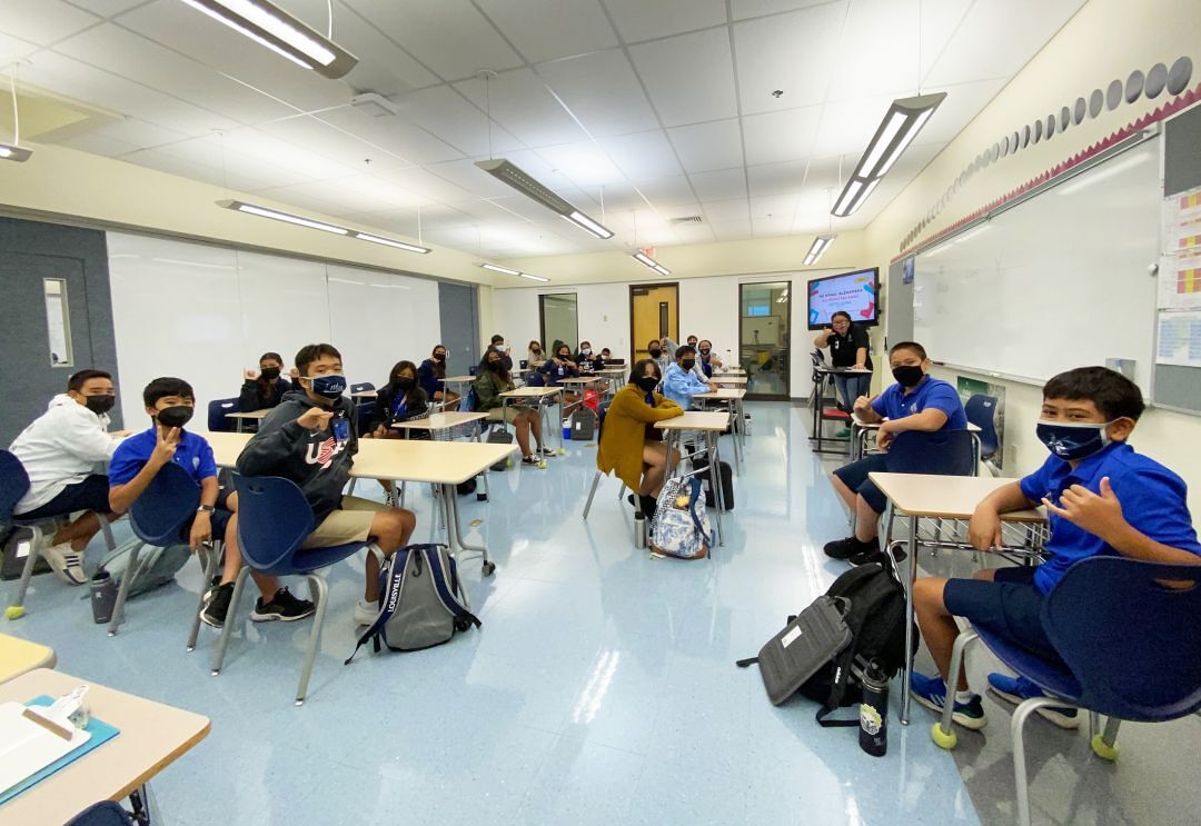 KSK MS KUMU ‘ŌLELO HAWAI‘I KALEHUA KAWA‘A – The most positive aspects of being back at school are that haumāna get to interact with their kumu and friends and that they understand and learn better in person. As a kumu, I mahalo being here in person because we are able to send and receive energy in the class, which feeds the lesson and the learning process. WHAT WE’RE UP TO – We are currently learning nā nīnau ʻalemanaka, nā nīnau maʻamau and hoʻolauna in papa ʻōlelo Hawaiʻi.