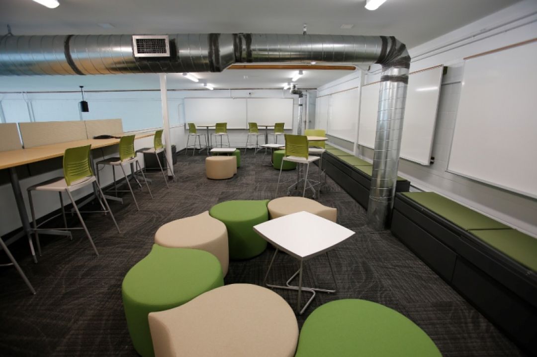 The collaborative learning space includes a ground-floor meeting area.