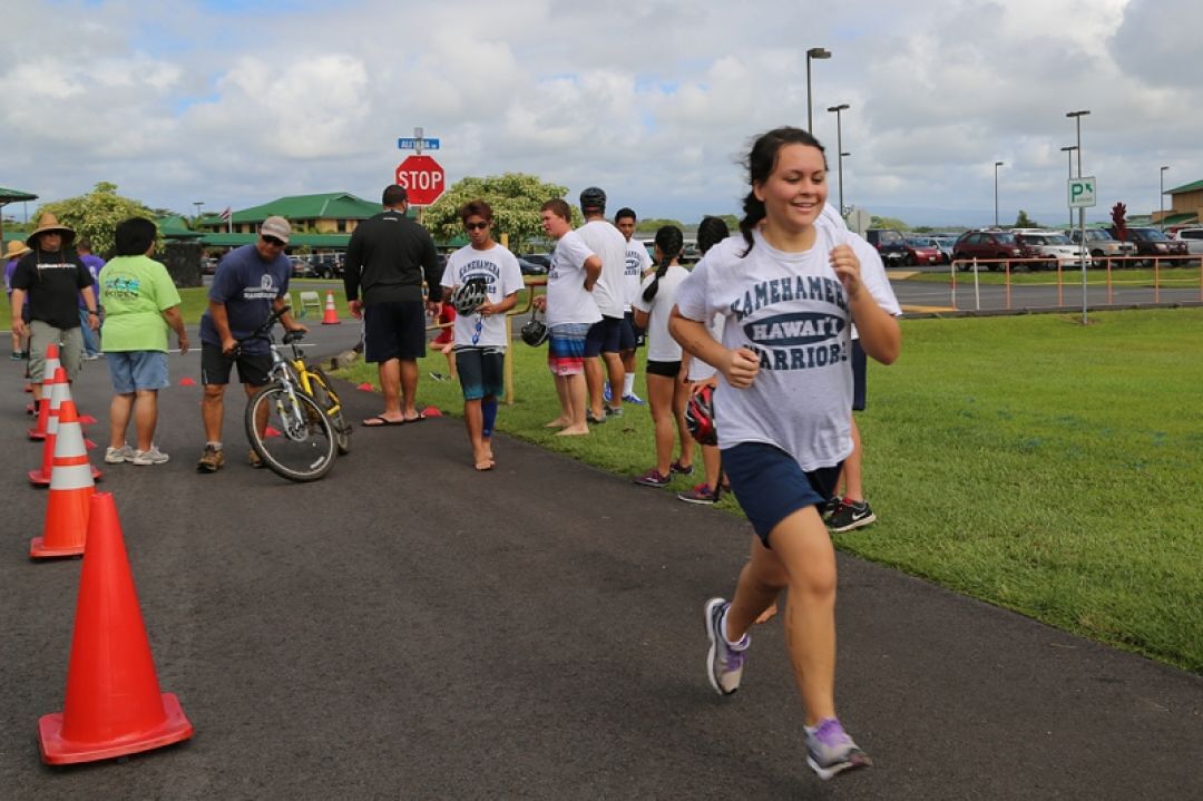 After the swim and bike courses, students complete a 2.5-kilometer run around the Kea‘au campus.
