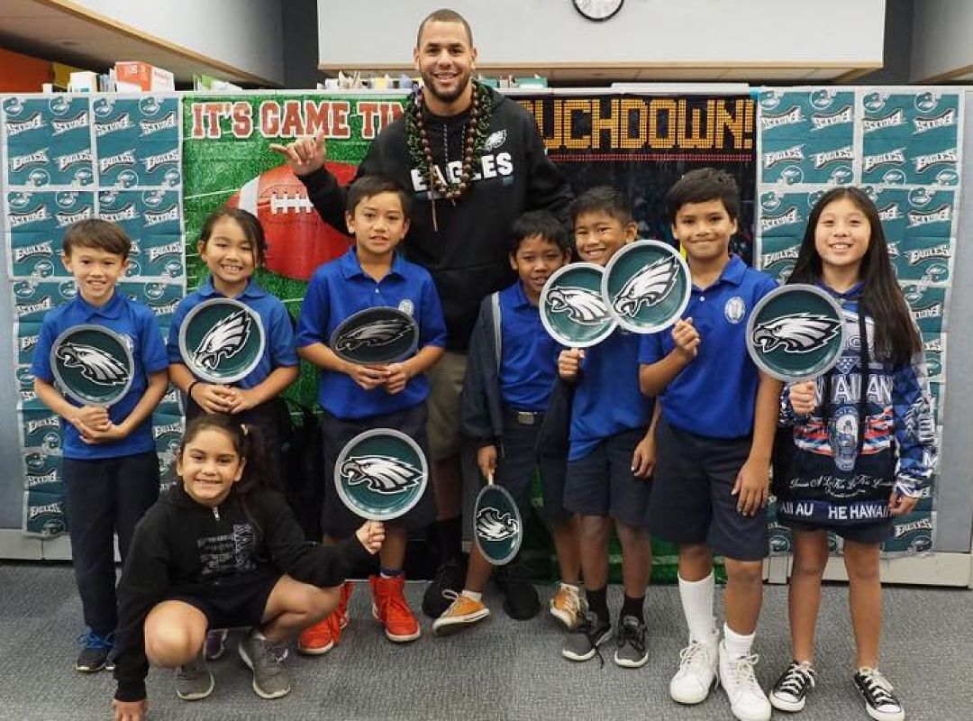 Earlier last year, the linebacker and special teams standout spent time with KSK Elementary haumāna at the “Genius Bar” as students asked questions about various topics as part of an ongoing research project.