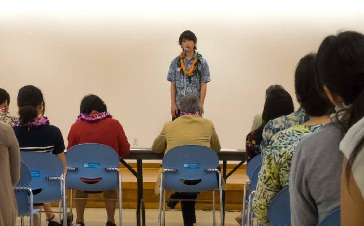 While the showcase is not usually a competition, this year was a milestone, marking the 150th anniversary of the first immigrants from Japan to come to Hawaiʻi. Students were evaluated for participation in a special event marking that anniversary, in which the top two students speeches would be selected to participate.