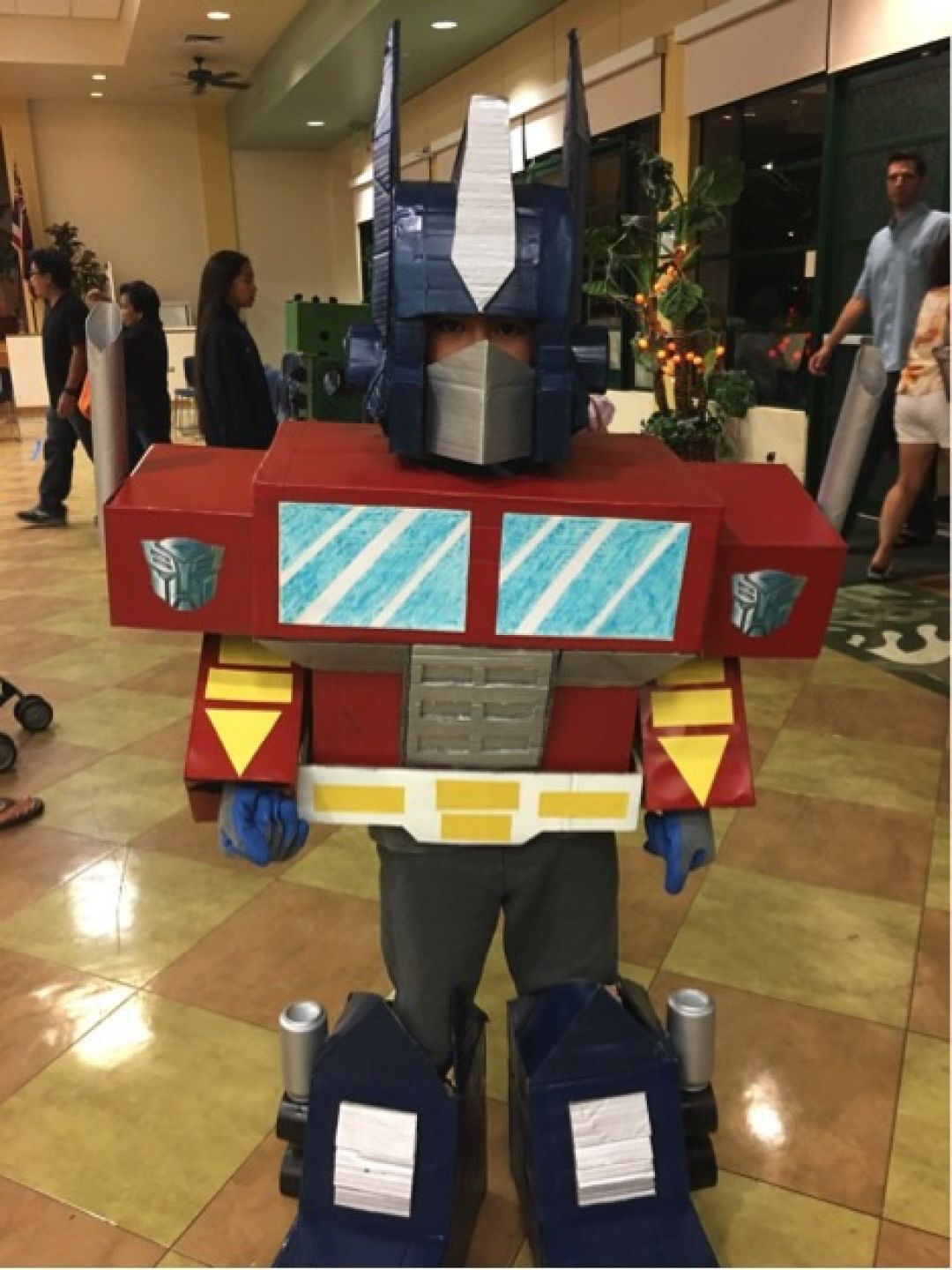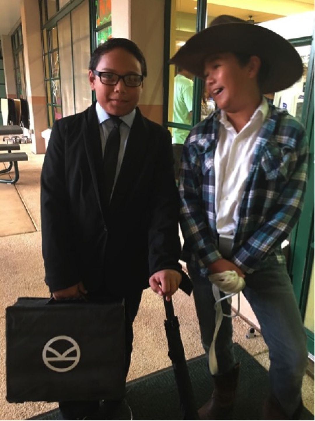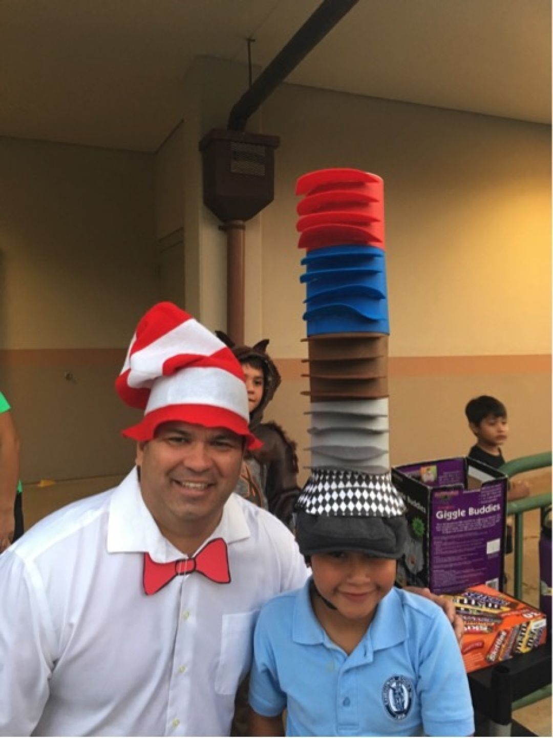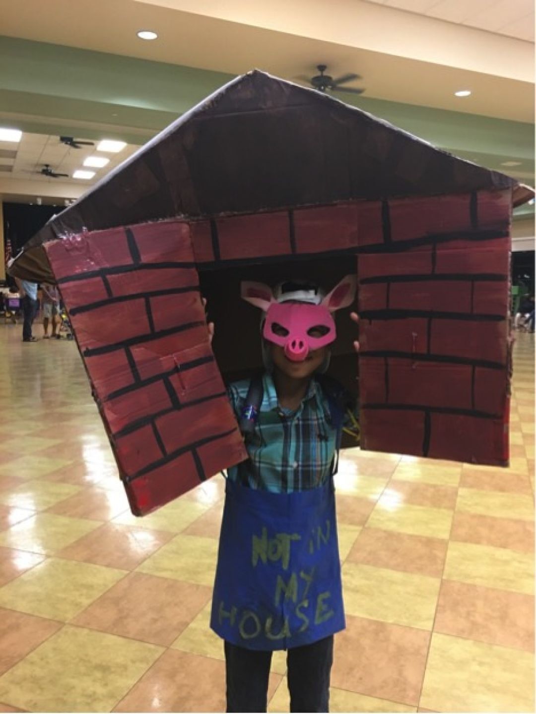 Merging literacy with 21st Century learning, haumāna designed and created literary-themed costumes using upcycled materials for our Trunk or Treat event this past Friday. Students took a Design Thinking approach to design their costumes after book characters and then finished their creative costumes at home. The evening started off with the Costume Parade where haumāna revealed their costumes and paparazzi parents caught the costume celebrities walking the stage. Notable faces included the salesman from Caps for Sale, a pig with a unique message, Little Red Riding Hood who passed out her own delicious treats, heroes and villains from Star Wars, the Cat in the Hat, Hina, and even a number of aliʻi.