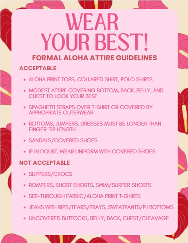 Students should follow all Aloha Wear guidelines so these dress days can continue.