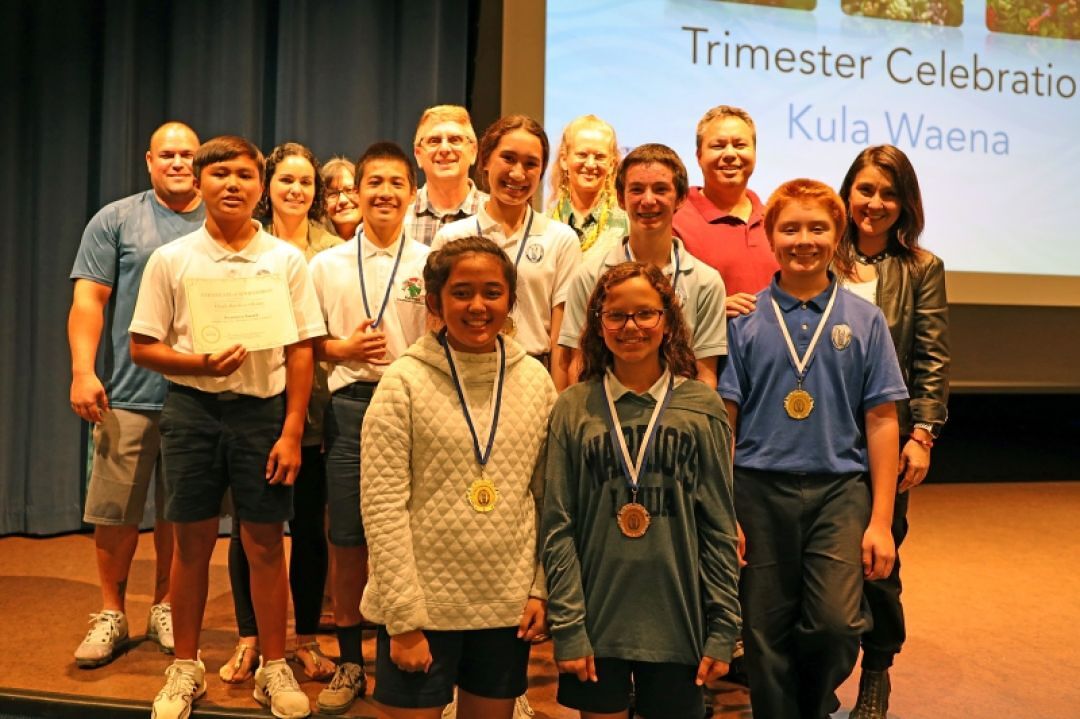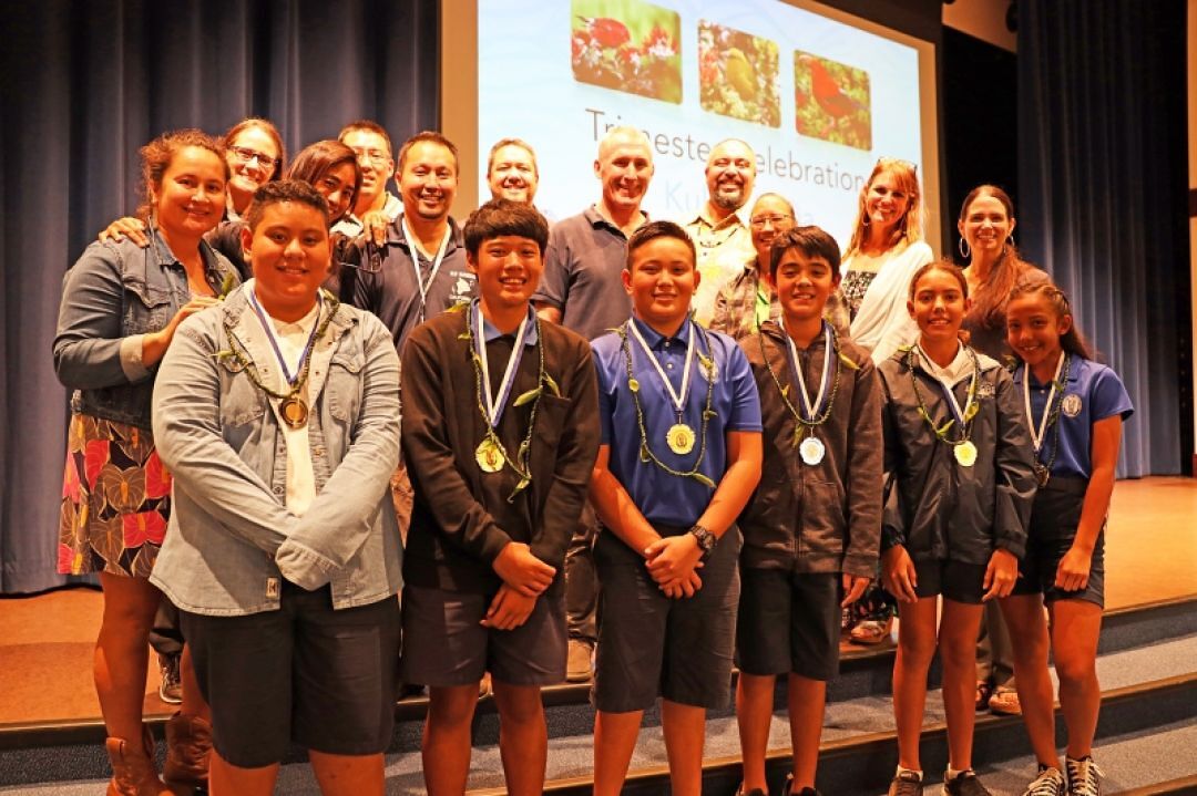 Students earning Poʻo Kula list (4.0 or higher term GPA) and Grade Level E Ola! Awardees were also presented with their certificates and awards, along with the announcements for ʻApu Lanakila Awards for advisories and overall awards.