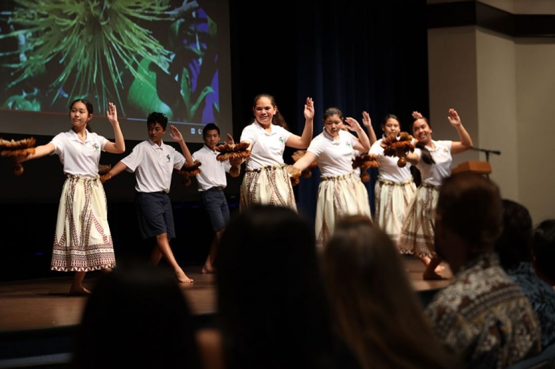 Kula Waena held its School Year 2019-2020 2nd trimester celebration on March 5 to acknowledge and celebrate the hard work, dedication and talents of our haumāna. Students who represented Kamehameha Hawaiʻi at the Ritsumeikan Global Summit in Kyoto, Japan opened the celebration with hula and shared more about their incredible experience from just a few weeks prior.