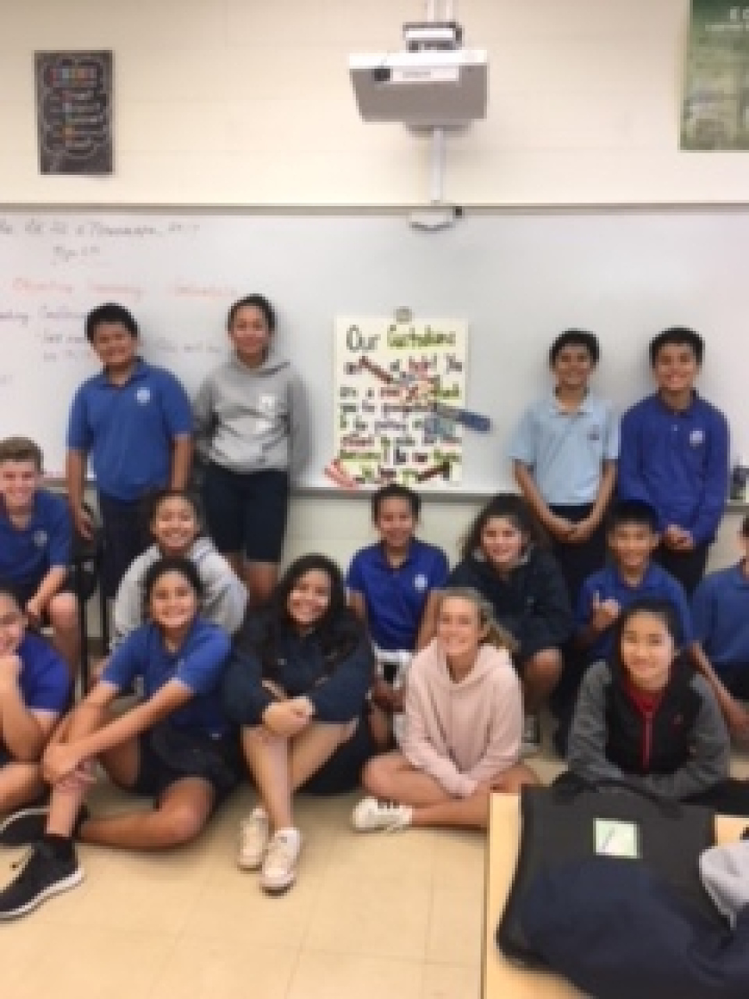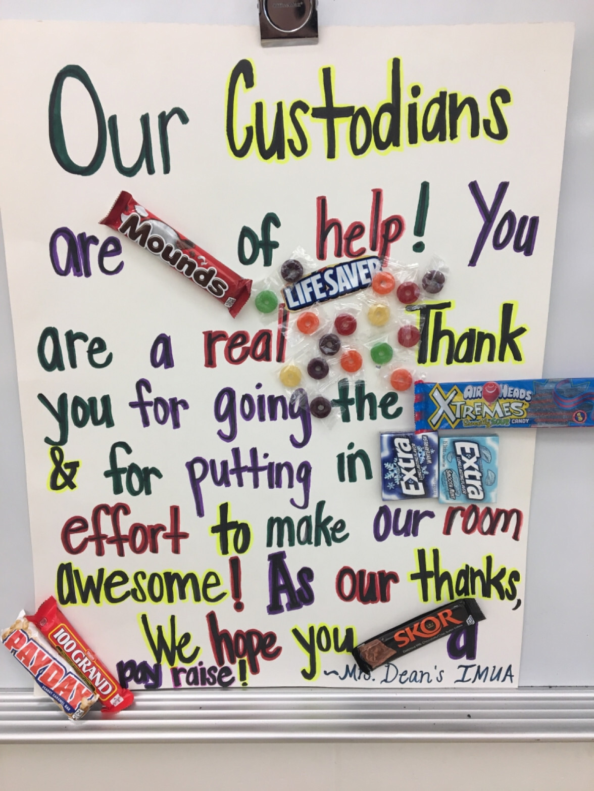 On November 1st, students in Kumu Dean's advisory class were asked to think about a person or group of people they wanted to mahalo this month, in the spirit of Thanksgiving and showing gratitude. Kumu Dean's class expressed that they wanted to thank the custodians for always keeping our classrooms clean and comfortable. The students made a poster to present to them during advisory. On the back of the poster, each student wrote a short note to the custodial staff. Mahalo to our custodians and happy Thanksgiving!