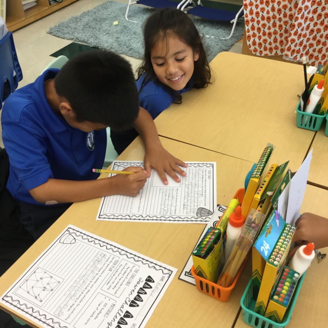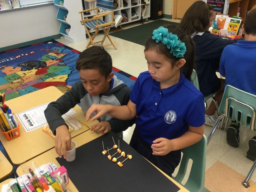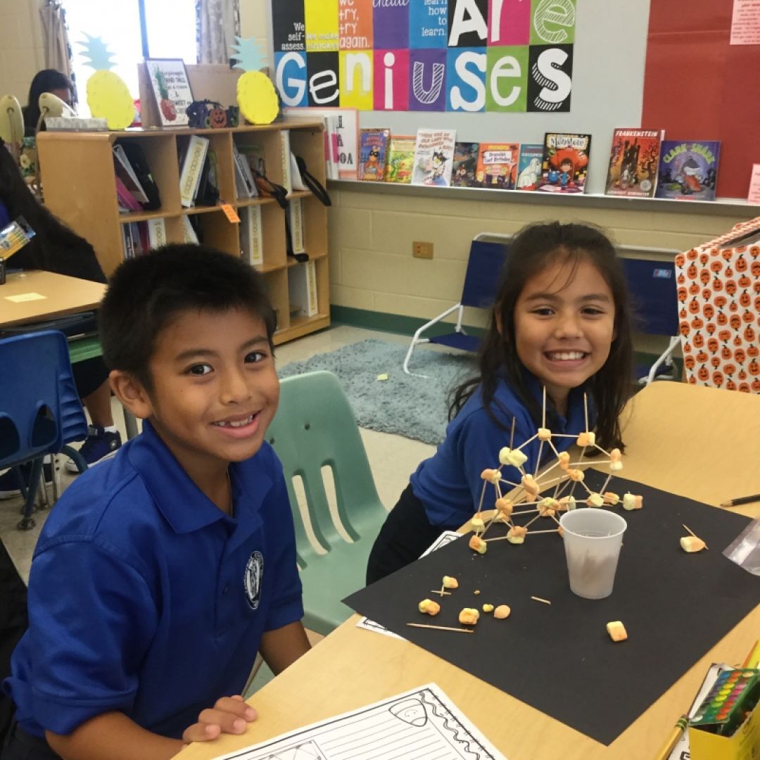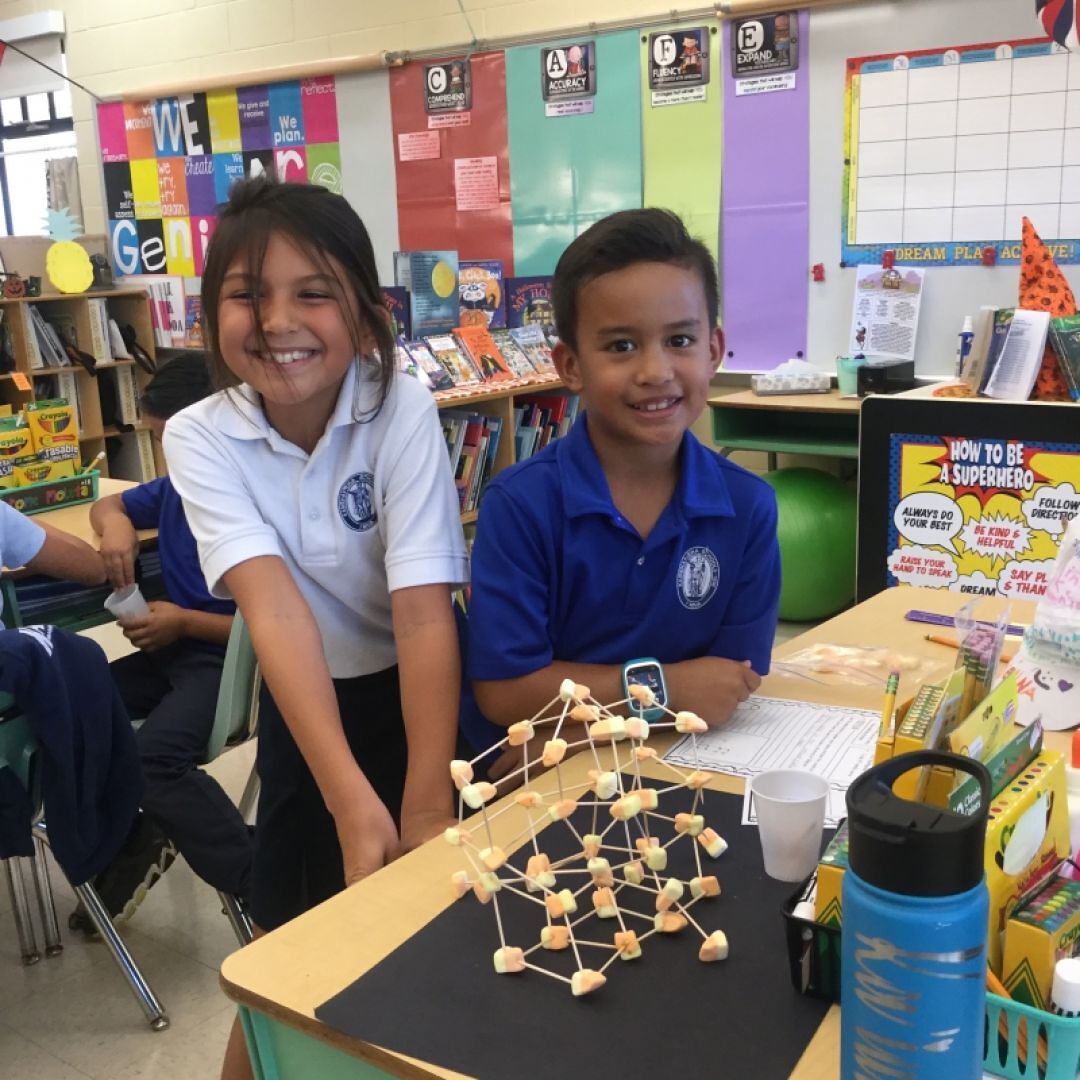 Third graders in Kumu Kamaʻs class engaged in the Candy Corn Tower Challenge. The goal of this investigation was to build the tallest free-standing structure using only 100 toothpicks and 2 cups of candy corn marshmallows. Students worked in pairs to share different ideas on how to solve the problem. Pairs completed a STEM investigation sheet where they wrote a plan of action and sketched what they envisioned. Groups worked for 8 minutes, then reflected on how they could improve their creation. At this point, many pairs revised their original thoughts. Students then collaborated and created for another 7 minutes, putting their revised plan into action. At the end of the challenge, students recorded what they ended up doing to design and bulld their tower, described the outcome of the challenge, and reflected on what worked well during the challenge, what didnʻt work well, and how they would improve their design next time.