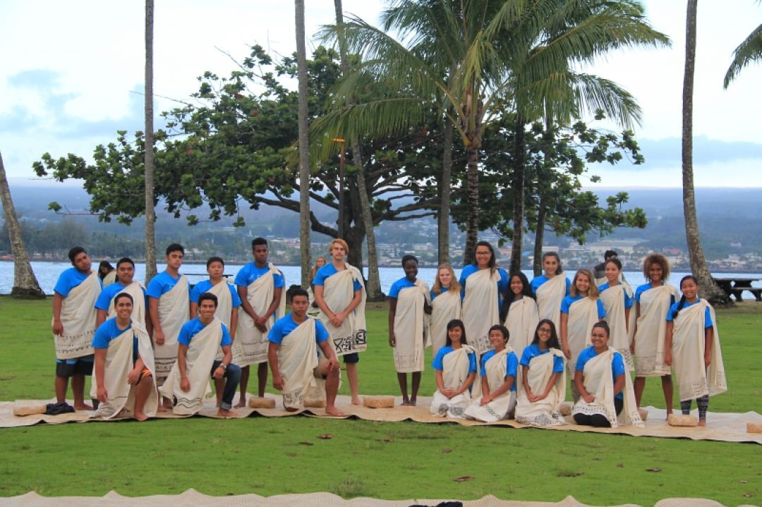 Students from the Kupa ‘Āina program gather for a group shot before the hō‘ike ceremonies.