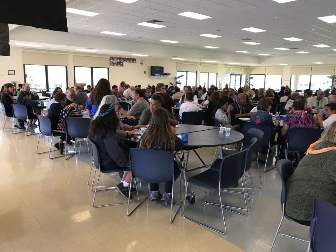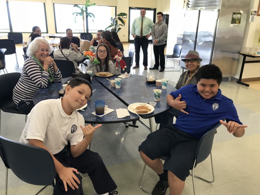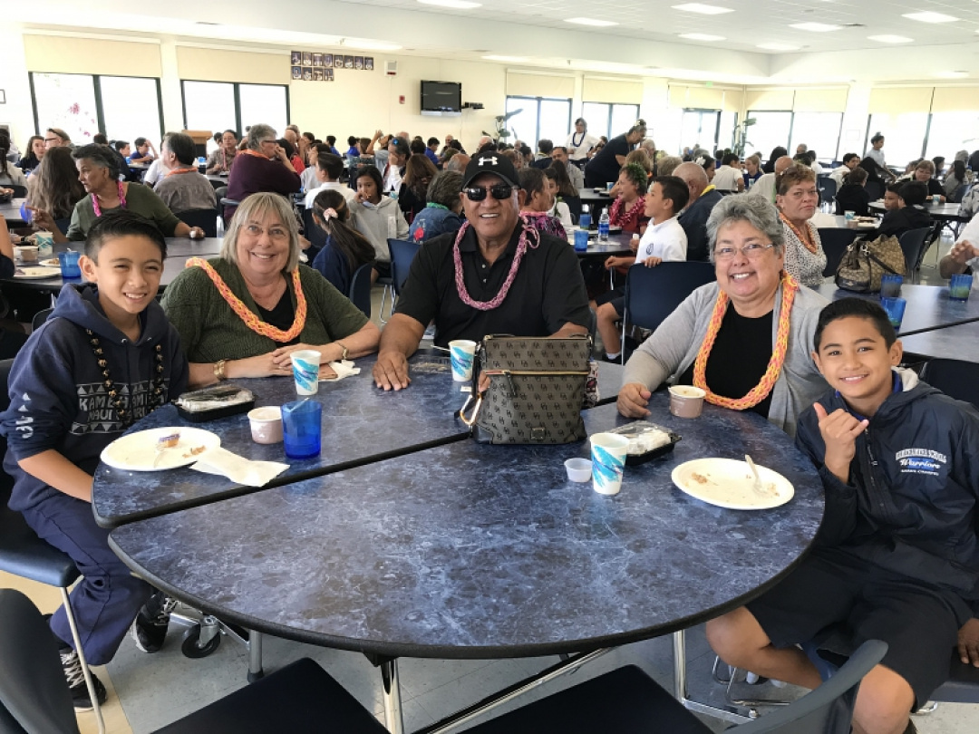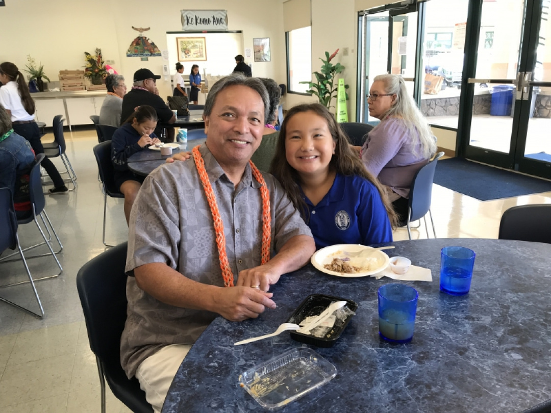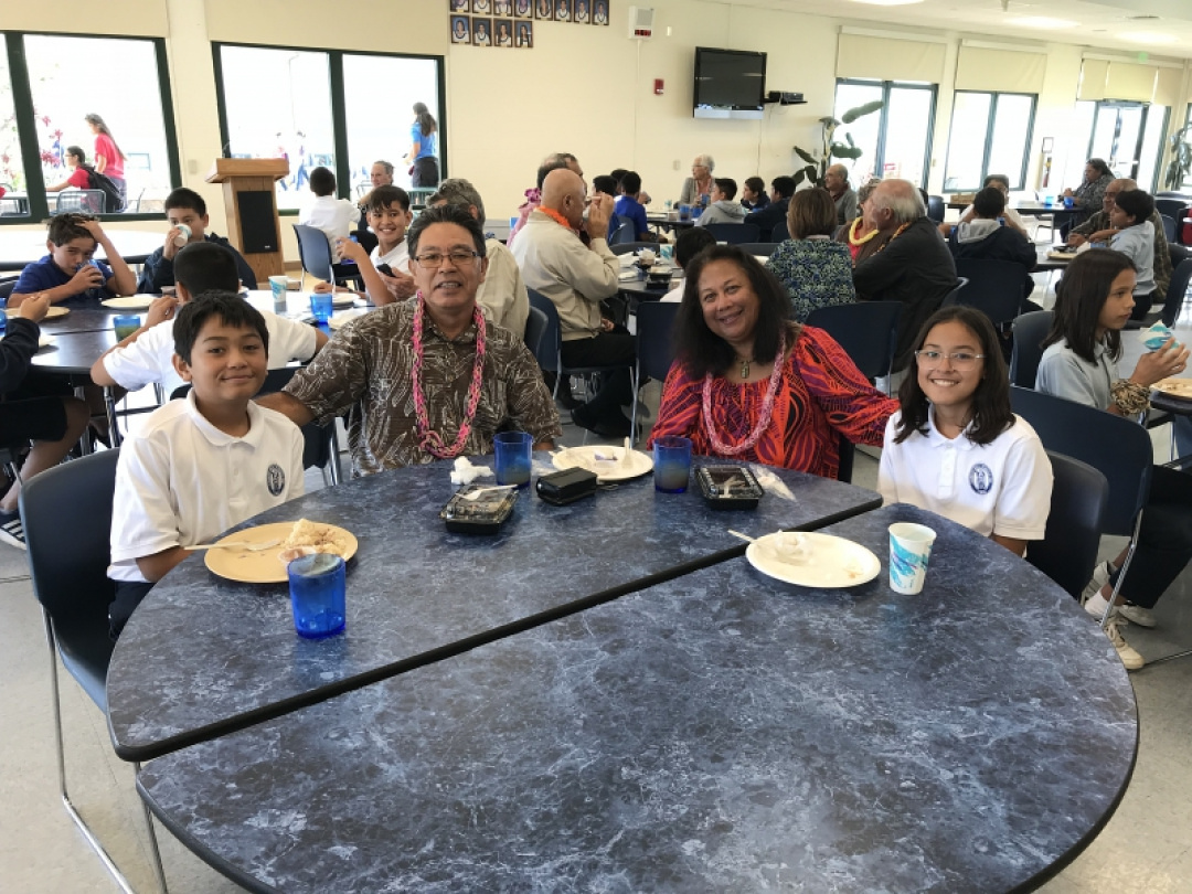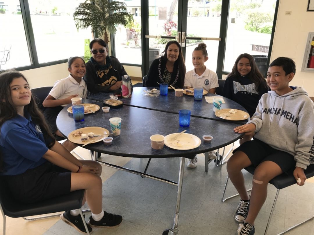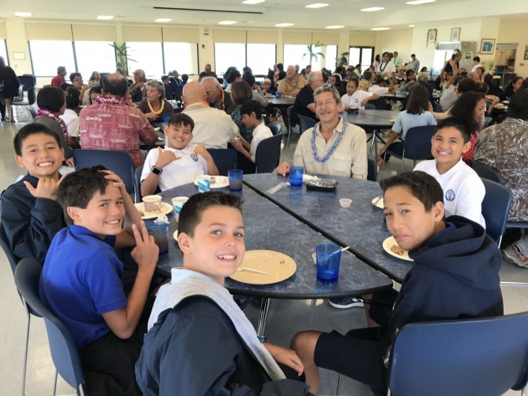 Papa ‘Eono welcomed kūpuna, for the third year in a row, in celebration of Lā Ho’omaika’i. This year Papa Makaloa honored 85 kūpuna. Mo’opuna and haumāna hānai talked story and ate lunch together with kūpuna at Keʻeaumokupāpaʻiaheahe and then enjoyed pilina in Keōpuōlani Hale. Kūpuna were serenaded by KS Mauiʻs Ed Juan (c/o 2015) followed by kahiko performances by Kumu Piliʻs Hula Class, and the grand finale of mele ranging from Christian Ed songs to He ʻInoa No Pauahi from the young men and women of the Class of 2024. What a special day it was, and we mahalo our kūpuna!