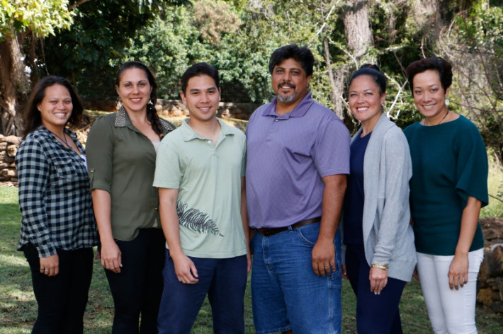 The current FNFP cohort, Papa Mālamalama: Kaui Sana, Māhealani Kauahi, Kauanoe Batangan, Daniel Ornellas, Le‘ahi Davis Naone Hall, and Keli‘i Kapali.