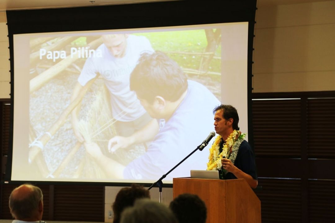 The fellowship culminates in a project presentation by cohort members. Above, 2013-2014 fellow and KS Cultural Specialist Maka‘ala Rawlins opens his group's presentation.