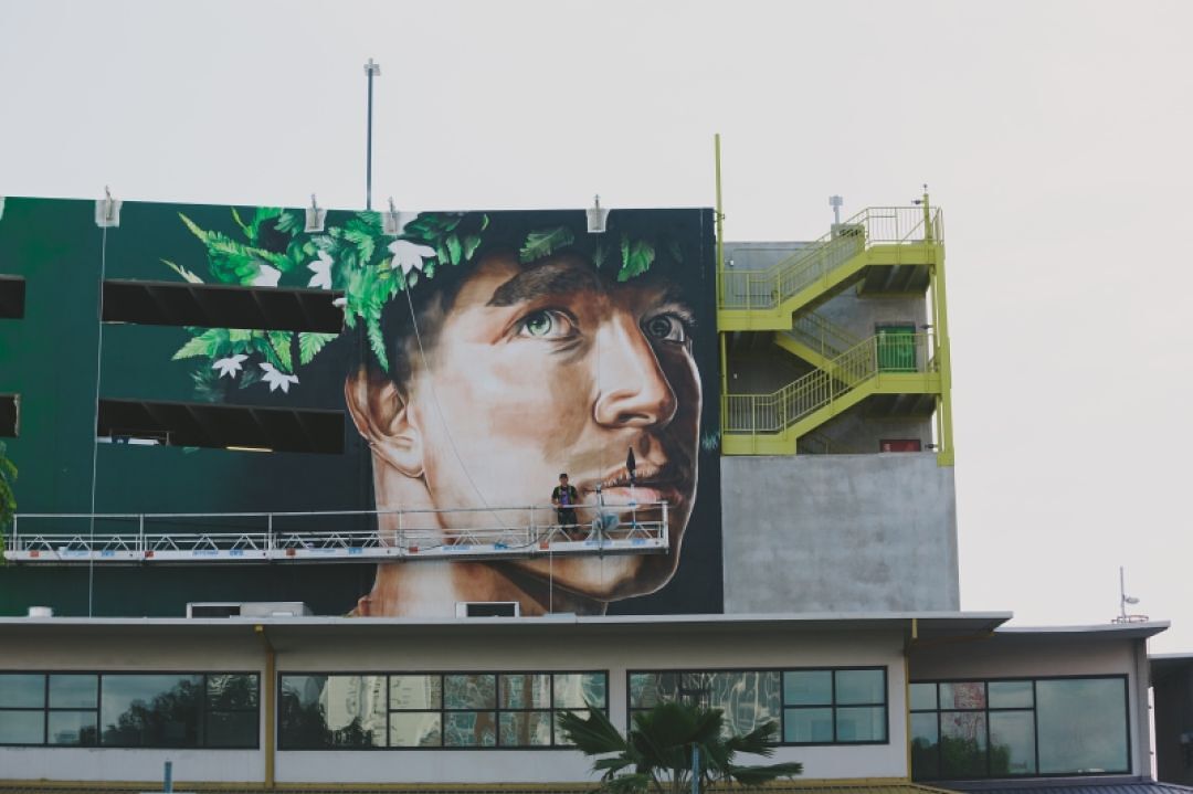 Renowned local street artist Kamea Hadar has portrayed the Hawaiian legend of the naupaka flower on the parking structure of the Kamehameha Schools retail complex, SALT at Our Kaka‘ako.