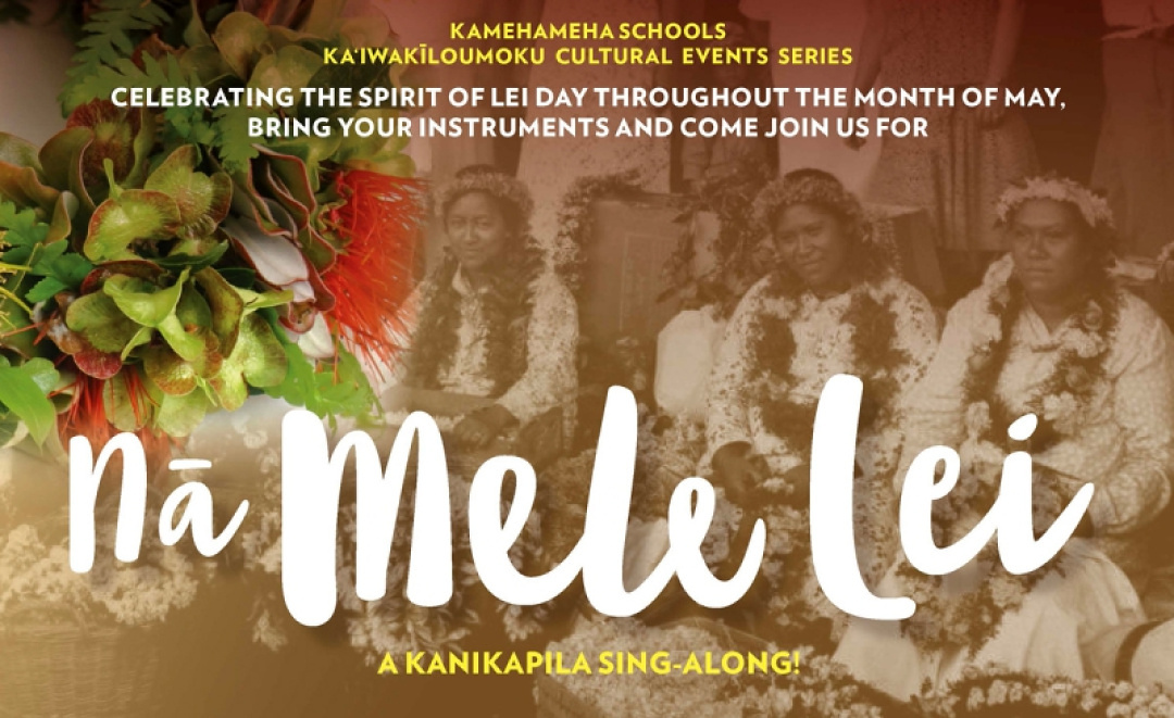 Join the KS ‘ohana at Nā Mele Lei – A Kanikapila Sing-Along slated for the evening of May 15. Learn more below.